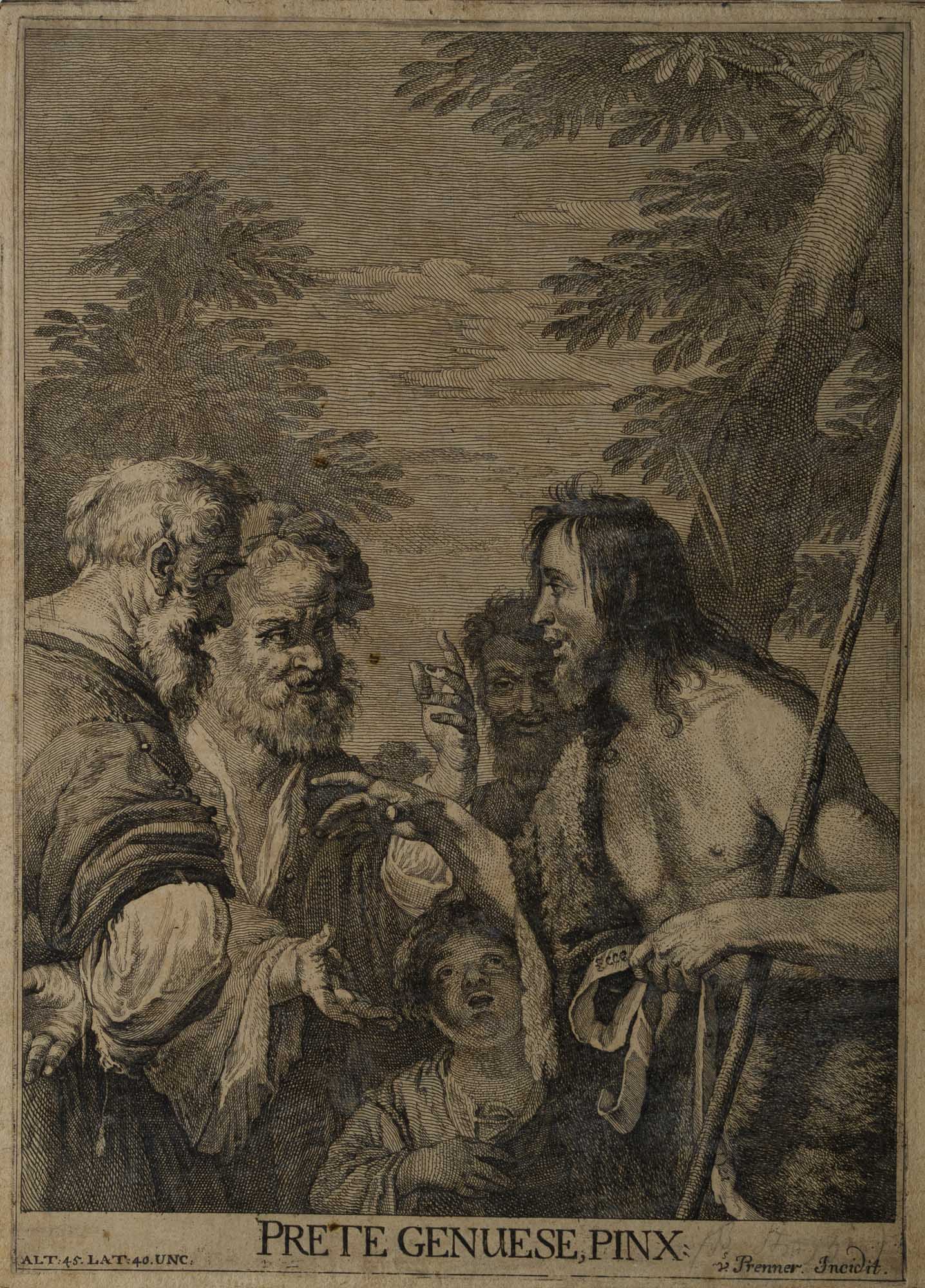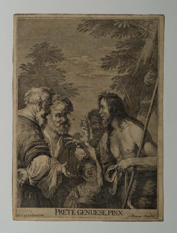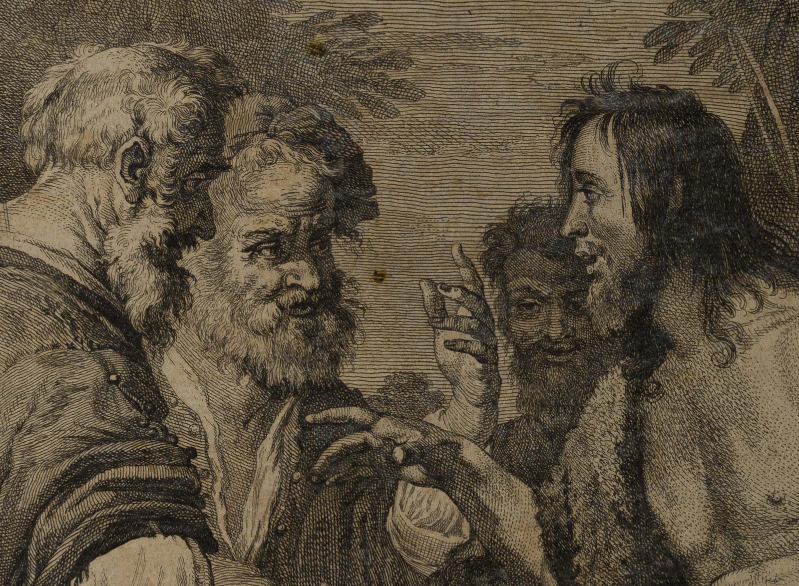 Il Prete Genovese: Bernardo Strozzi (1581 Genoa – 1644 Venice) after Anton Joseph von Prenner (1683 Wallerstein – 1743 Linz), John the Baptist explains his mission to the scribes, 18th century, Copper engraving