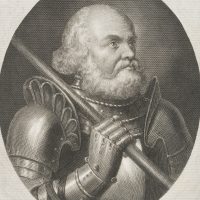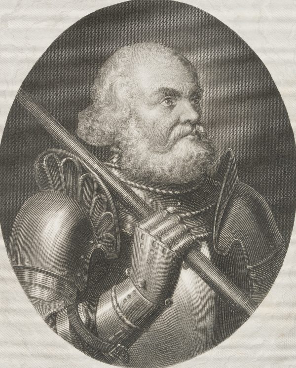 Johann Leonhard Appold (1809 Dennenlohe – 1858 Nuremberg), Portrait of the Imperial Knight Götz von Berlichingen with Lance in Iron Hand, 19th century, Steel engraving