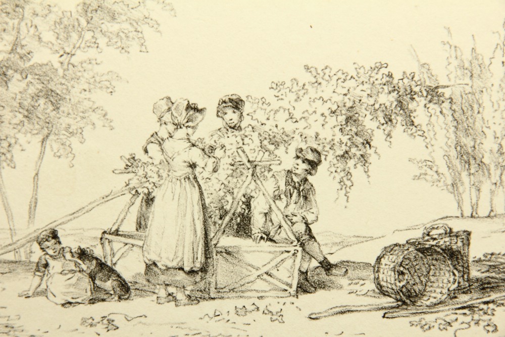 John Augustus Atkinson (*1775 London), Kinder bei der Hopfenernte, 1822, Lithographie