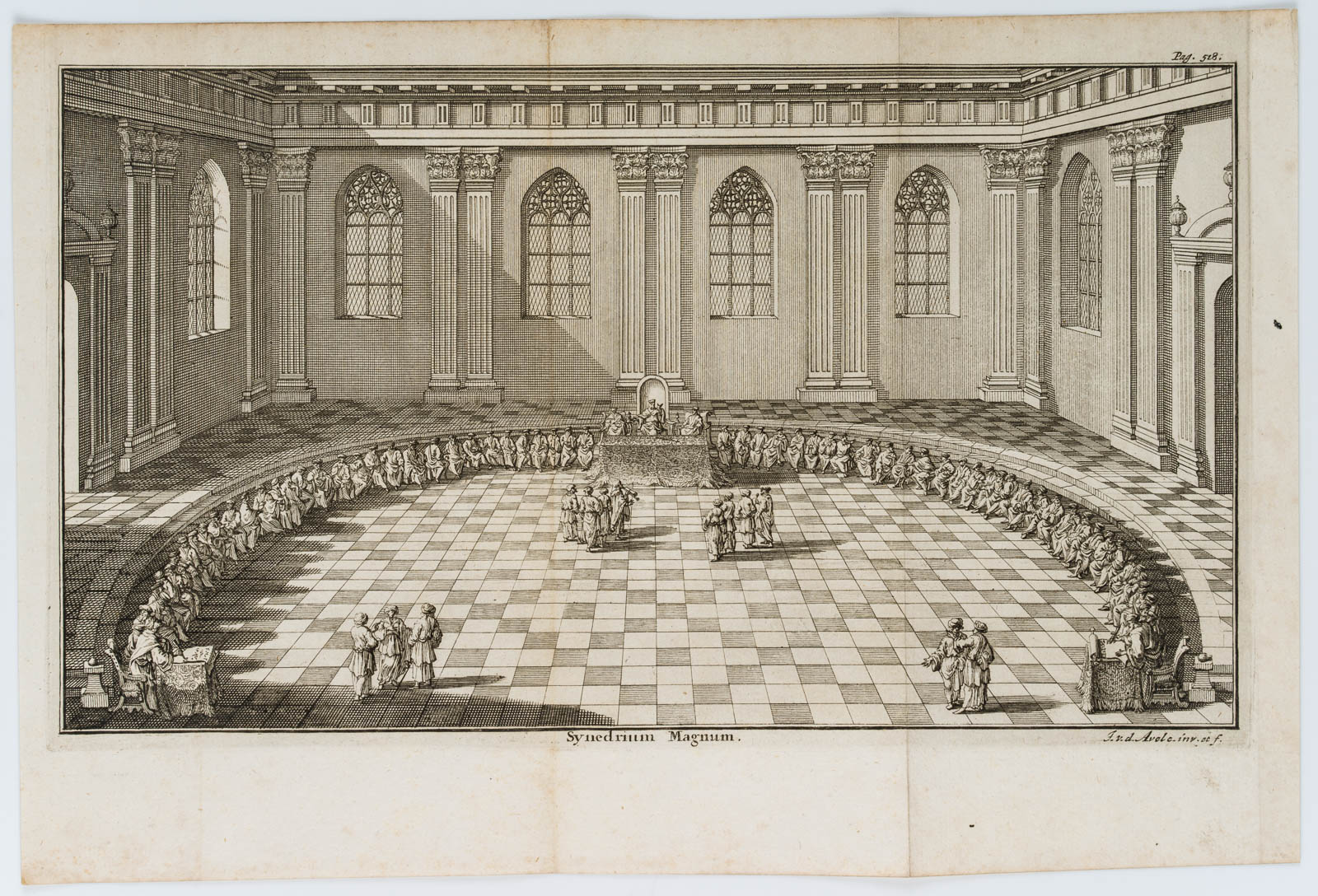Johannes van den Avele (1655 Amsterdam – 1727 Stockholm), Synedrium Magnum, “the great council”, “the supreme court”, from a book, 18th century, Etching