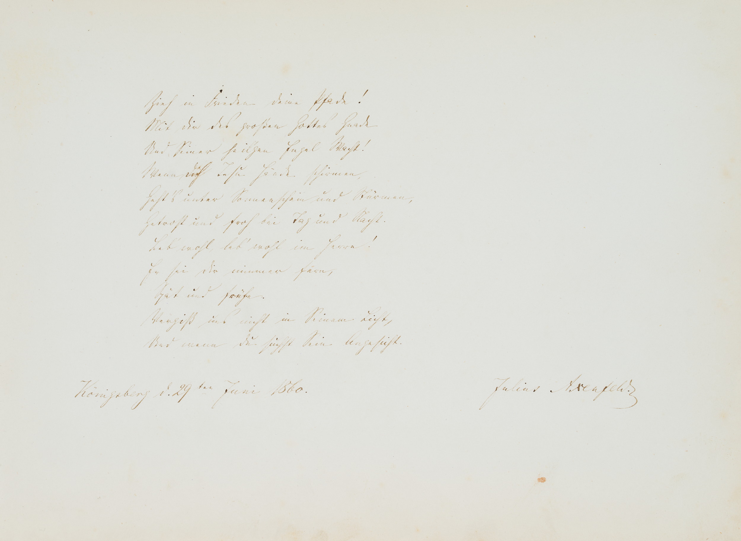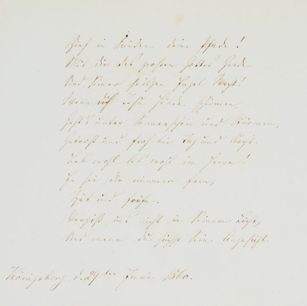 Julius Axenfeld (1834 Nowgorod-Sjewersk – 1896 Marburg An Der Lahn), Verse aus einem Königsberger Freundschaftsalbum, 1860, Tinte