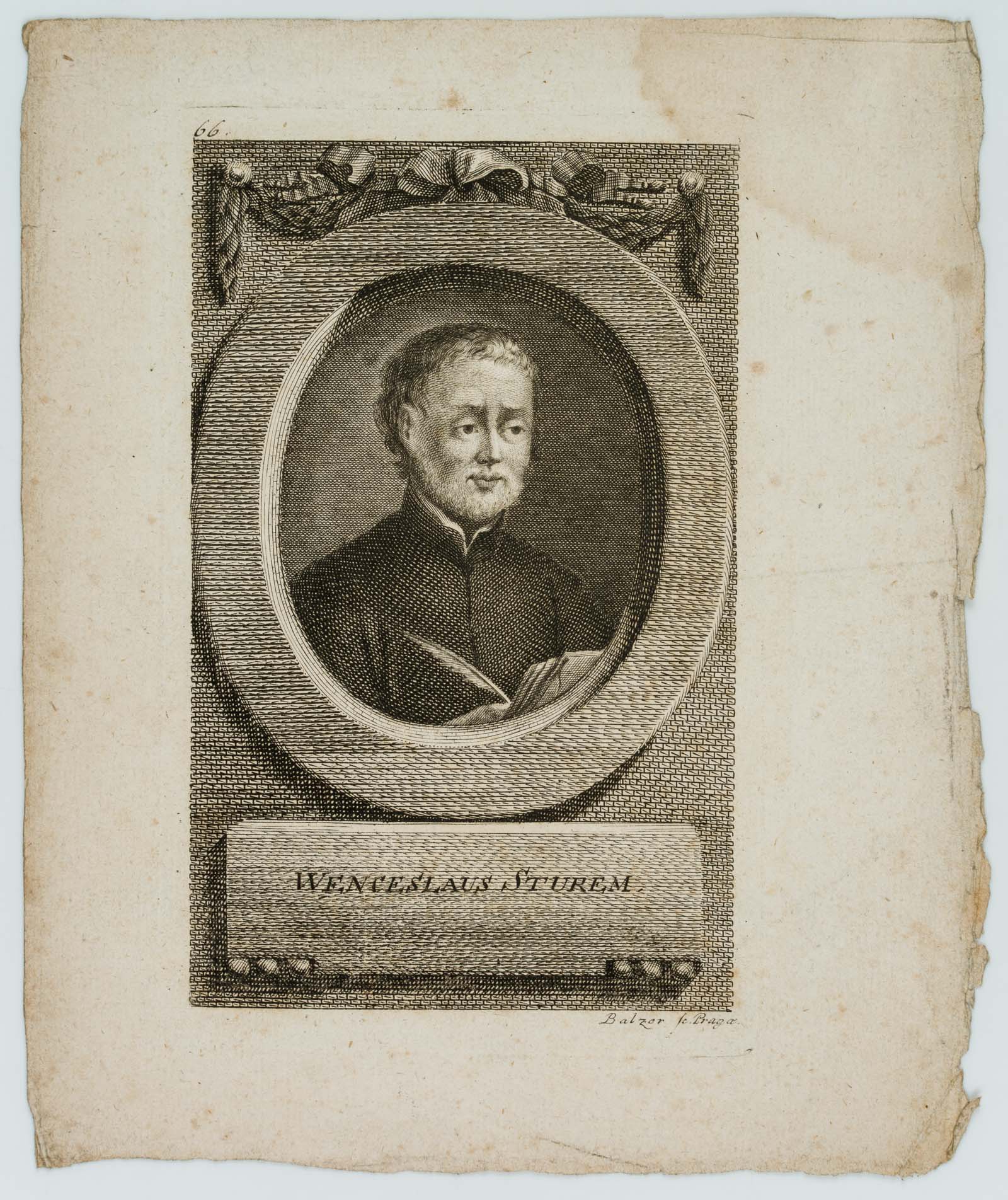 - Description: Portrait of the priest Wenzel Sturm (1531 – 1601) by the Bohemian engraver Balzer. From: 87 Illustrations of Bohemian and Moravian Scholars and Artists.