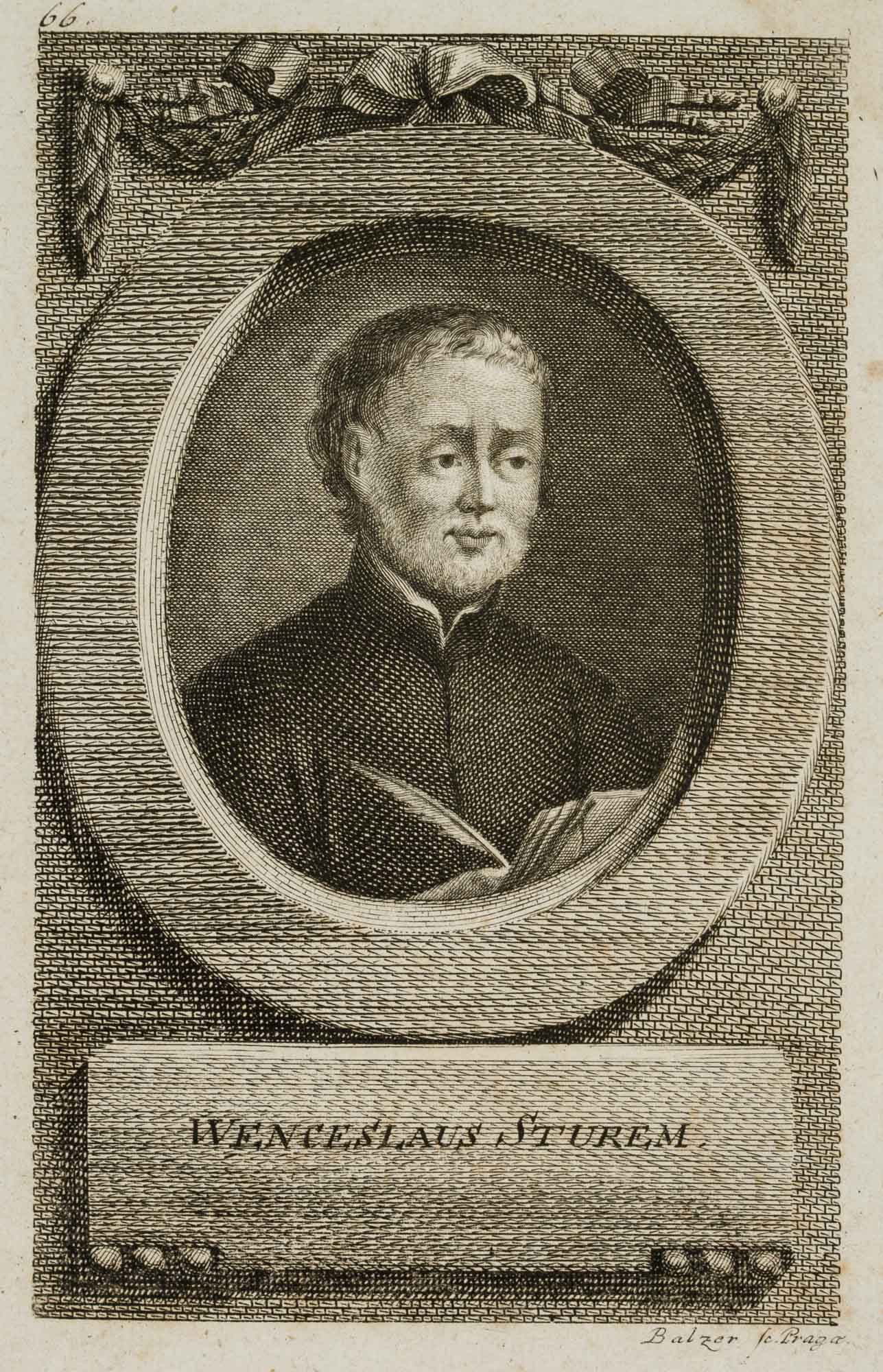 - Beschreibung: Porträt des Priesters Wenzel Sturm (1531 – 1601) von dem böhmischen Kupferstecher Balzer. Aus: 87 Abbildungen Böhmischer und Mährischer Gelehrten und Künstler.