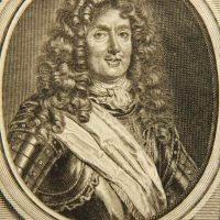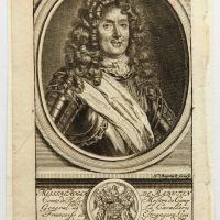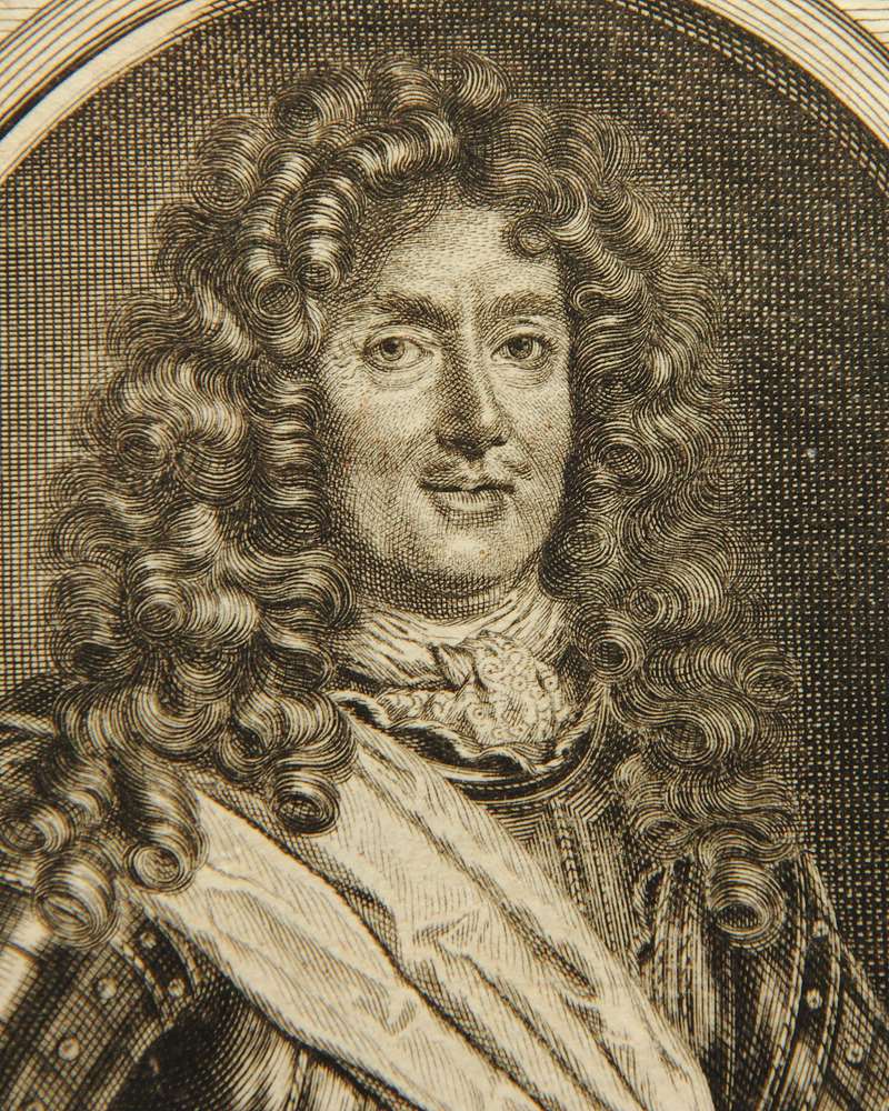 - Beschreibung: Auf Papier montiert Stehendes Brustbild im Dreiviertelprofil im Alter von 55 Jahren. Der Dargestellte trägt einen zeitgenössischen Feldharnisch mit Schärpe sowie eine Allongeperücke.