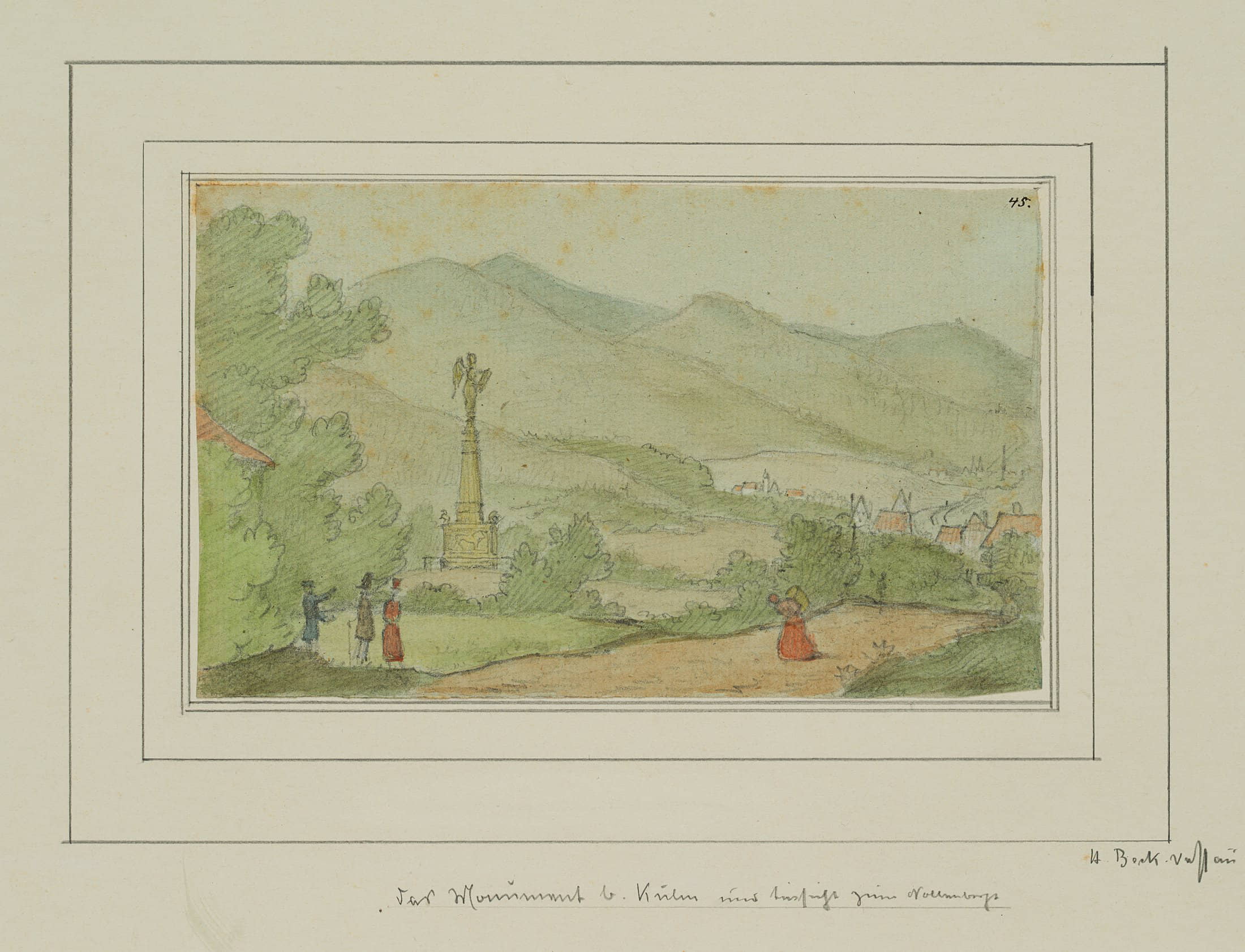 - Inscription: At the lower part inscribed on the support: “das Monument b. Kulm […?] zum […?] / H. Beck dessau”. Upper right numbered: “45.”.