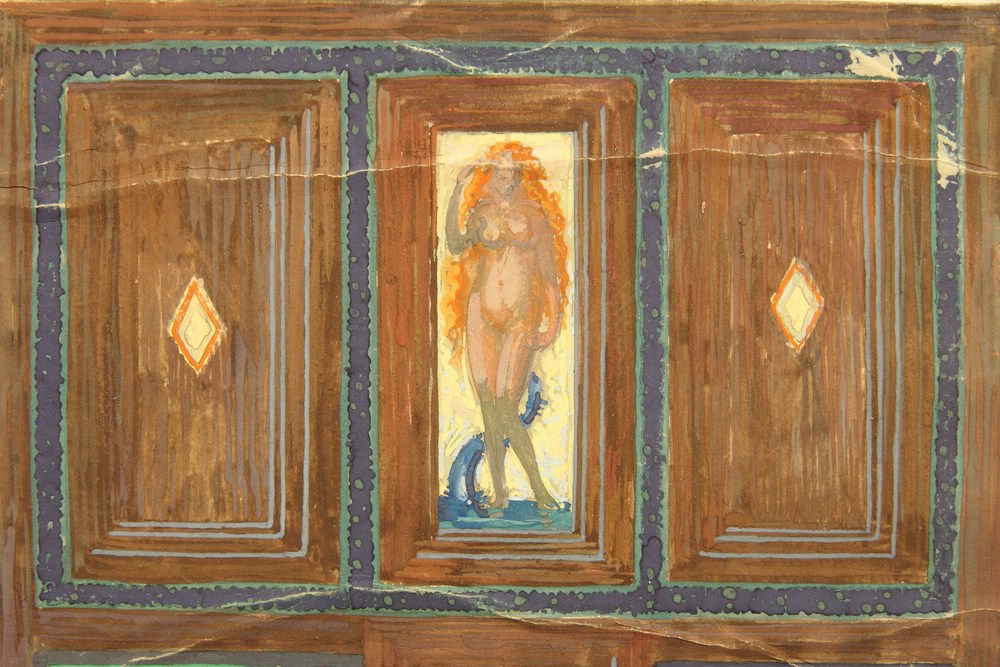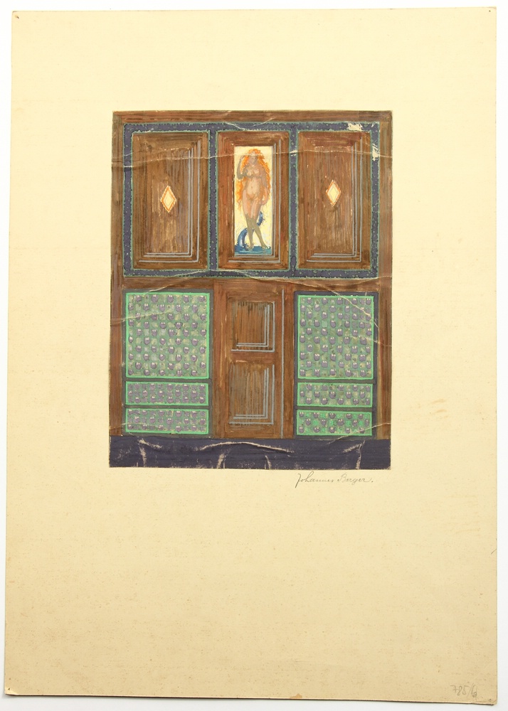 Johannes Berger (20th century), Design of a wooden wall panelling, , Gouache