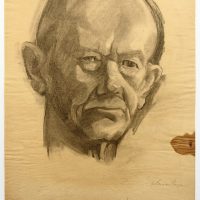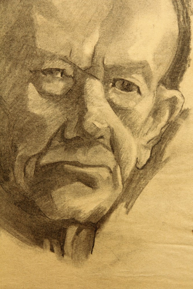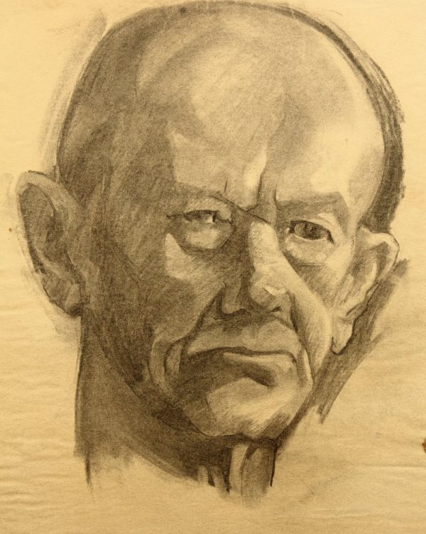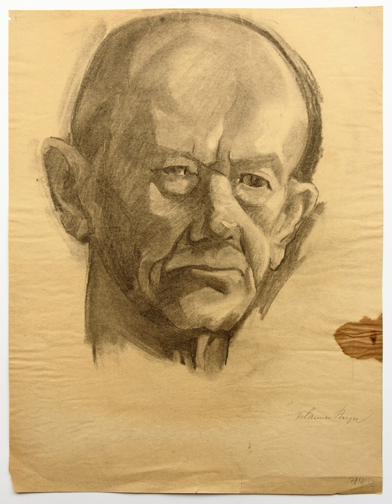 Johannes Berger (20th century), Portrait of a serious bald man, , Charcoal