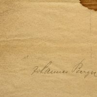 - Zustand: Guter Zustand. Das gesamte Blatt weist schwache Wellungen auf. An der rechten Blattkante befindet sich ein dunkler Flüssigkeitsfleck. In der Blattunterkante befindet sich ein kurzer und ein langer Randeinriss. Die Blattecken sind jeweils durch Risse oder Einstiche beschädigt.