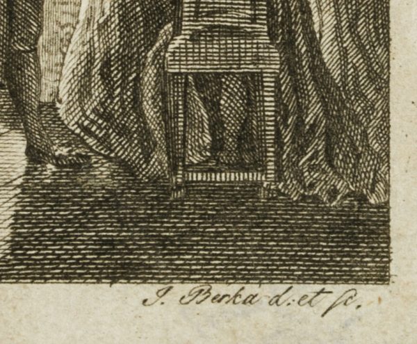 - Bezeichnung: Unterhalb der Darstellung vom Künstler in der Druckplatte signiert “J. Berka d. et sc.”. Oben rechts in der Druckplatte bezeichnet mit “Abt. v. Grafville 3. T.”.