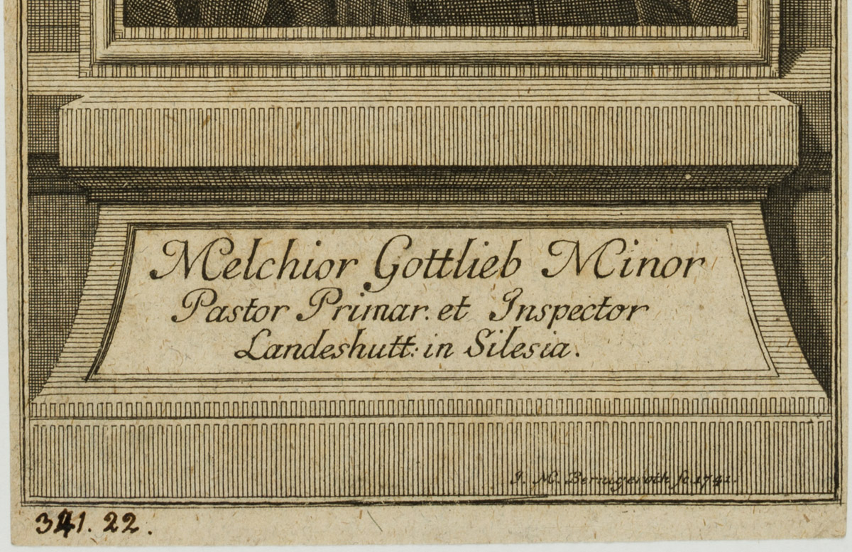 - Description: Inscribed “J.M. Bernigeroth fec. 1741”. Half-length portrait of the Protestant theologian Melchior Gottlieb Minor. The ascetic celebrated pulpit orator and writer acquired an excellent reputation as an author of theological works during the years of his work. In addition to various essays in journals, he published numerous books.