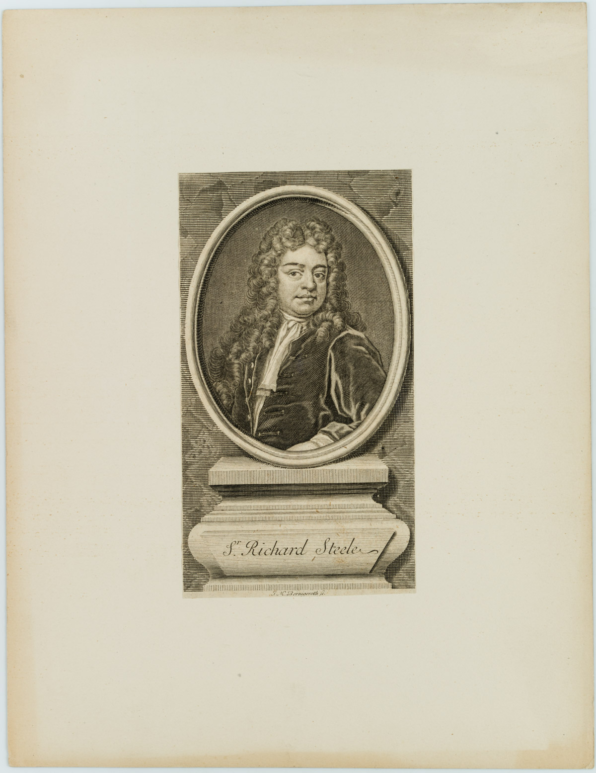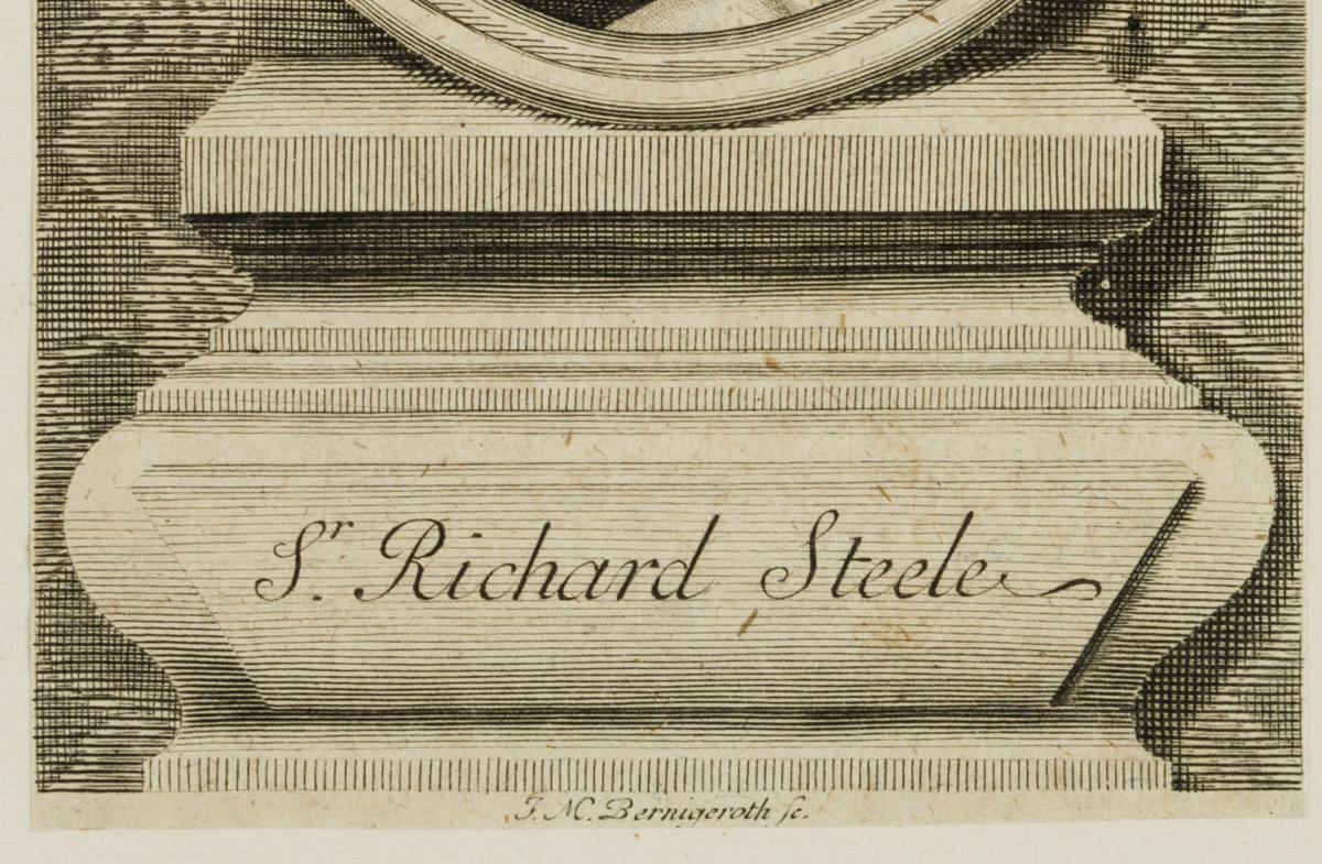 - Description: inscribed “J. M. Bernigeroth fc.”. Portrayed is Sir Richard Steele, Irish novelist and comedy writer. He was editor of the London Gazette and founder of The Tatler and The Spectator magazines.