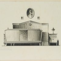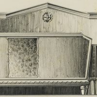 J. Betz (20th century), Historicising designs of period furniture as exercises for carpenters Bed with cartouche, Arts and Crafts, 1930s, , Pencil