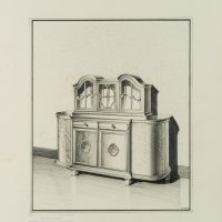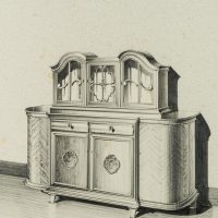 J. Betz (20th century), Historicising designs of period furniture as exercises for carpenters Buffet cabinet with decorative elements, Arts and Crafts, 1930s, , Pencil