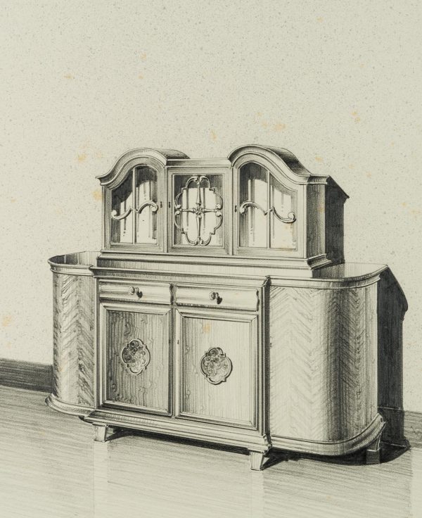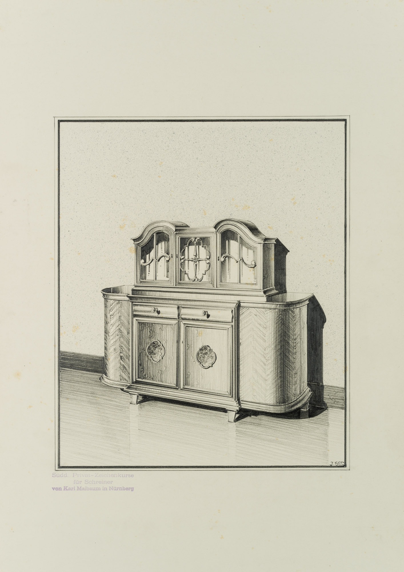 - Beschreibung: Buffetschrank mit dekorativen Elementen für das gutbürgerliche Wohnzimmer. Der Entwurf dieses Möbelstücks stammt aus der Zeichenschule von Karl Maibaum. Die Schreiner werden im Entwurfszeichnen von Stilmöbelstücken unterrichtet. Beachten Sie dazu unsere weiteren Angebote aus der Reihe ‘Zeichenschule von Karl Maibaum’.