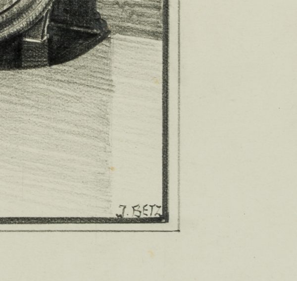 - Inscription: Signed in the drawing lower right “J.BETZ” and stamped on the left: “Südd. Privat-Zeichenkurse für Schreiner von Karl Maibaum in Nürnberg”.