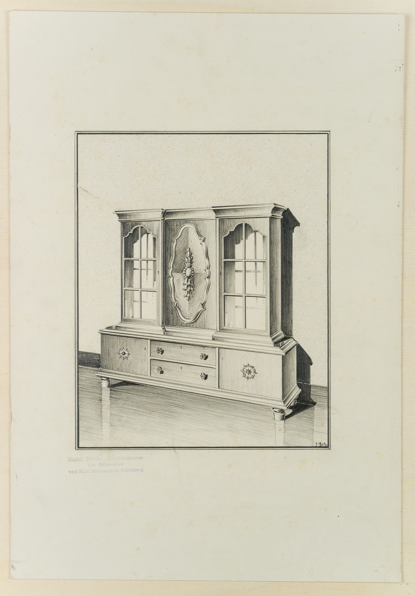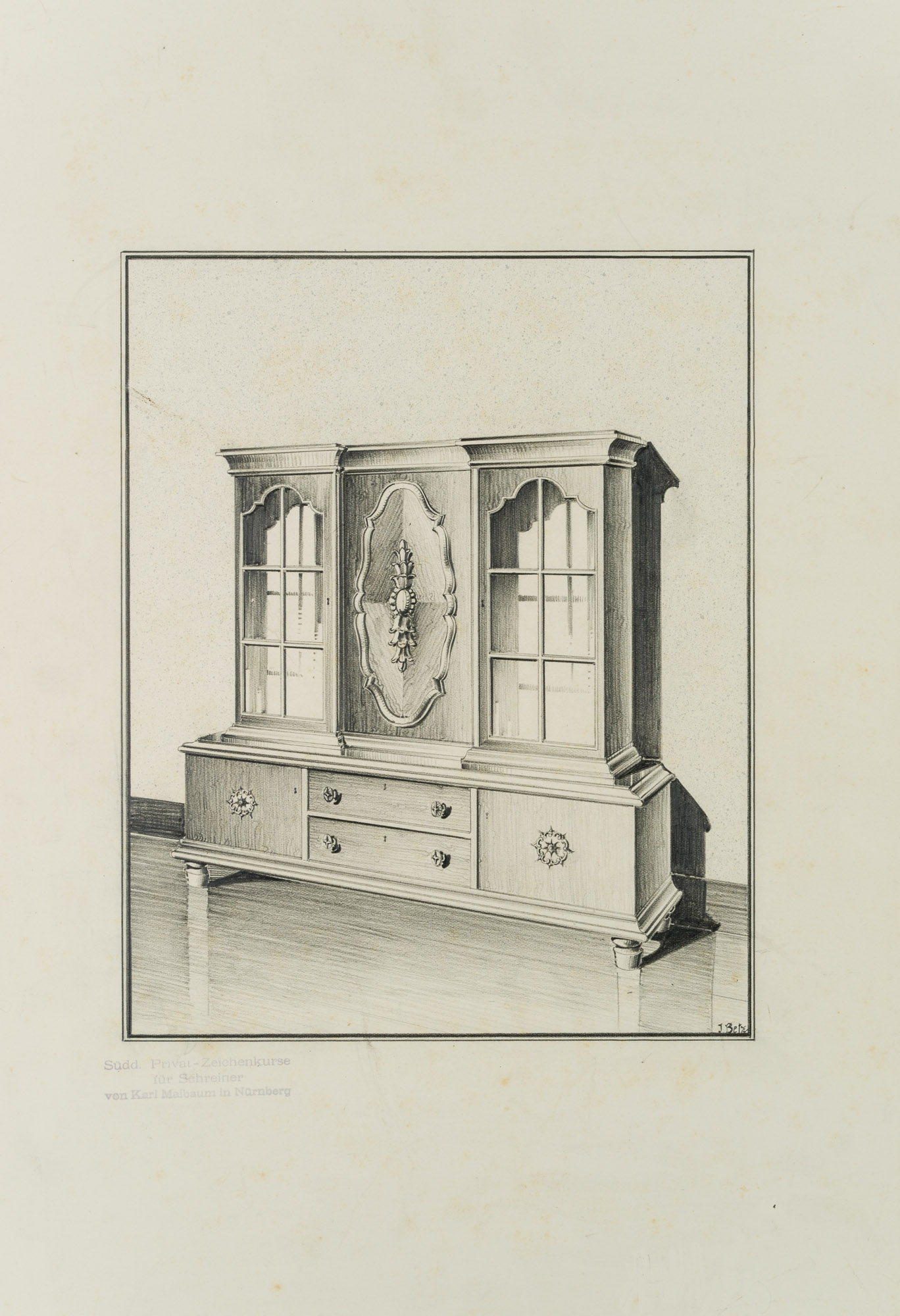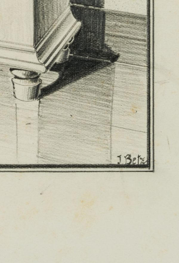 - Inscription: Signed in the drawing lower right “J.BETZ” and stamped on the left: “Südd. Privat-Zeichenkurse für Schreiner von Karl Maibaum in Nürnberg”.