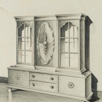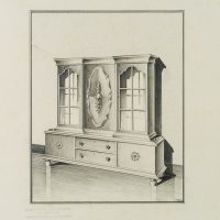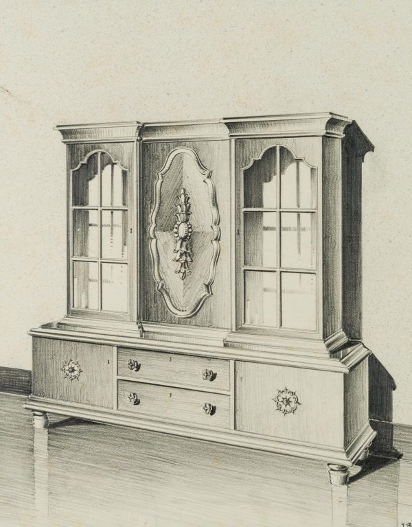 J. Betz (20th century), Historicising designs of period furniture as exercises for carpenters Glass display case with cartouche, Arts and Crafts, 1930s, , Pencil