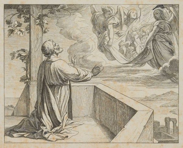 Joseph Blanz (1816 Fishing – 1861 Munich), Biblical depiction of a prophet, Old Testament, 19th century, Wood engraving
