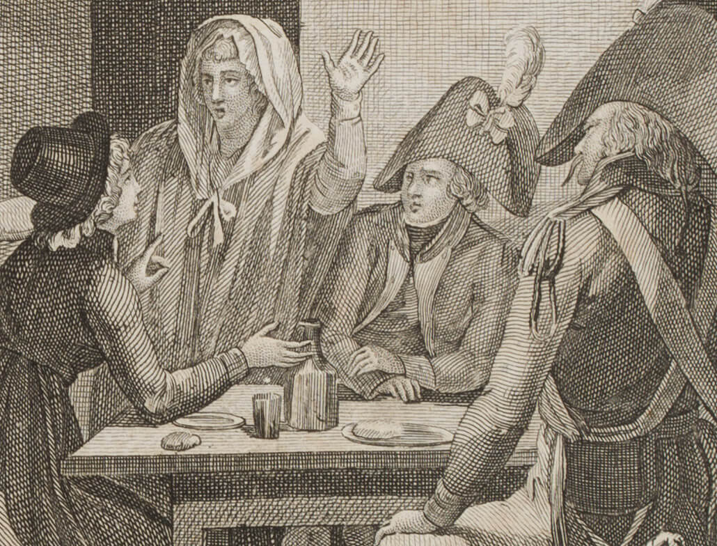 • Schlagworte: Buchillustration, Literarische Illustration, Besprechen, Debattieren, Beschließen, Abendrunde, Nacht, Geheimnis, Kerzenlicht, Dunkelheit, Politik, Literatur, Frankreich, Romantik, 1800-1849