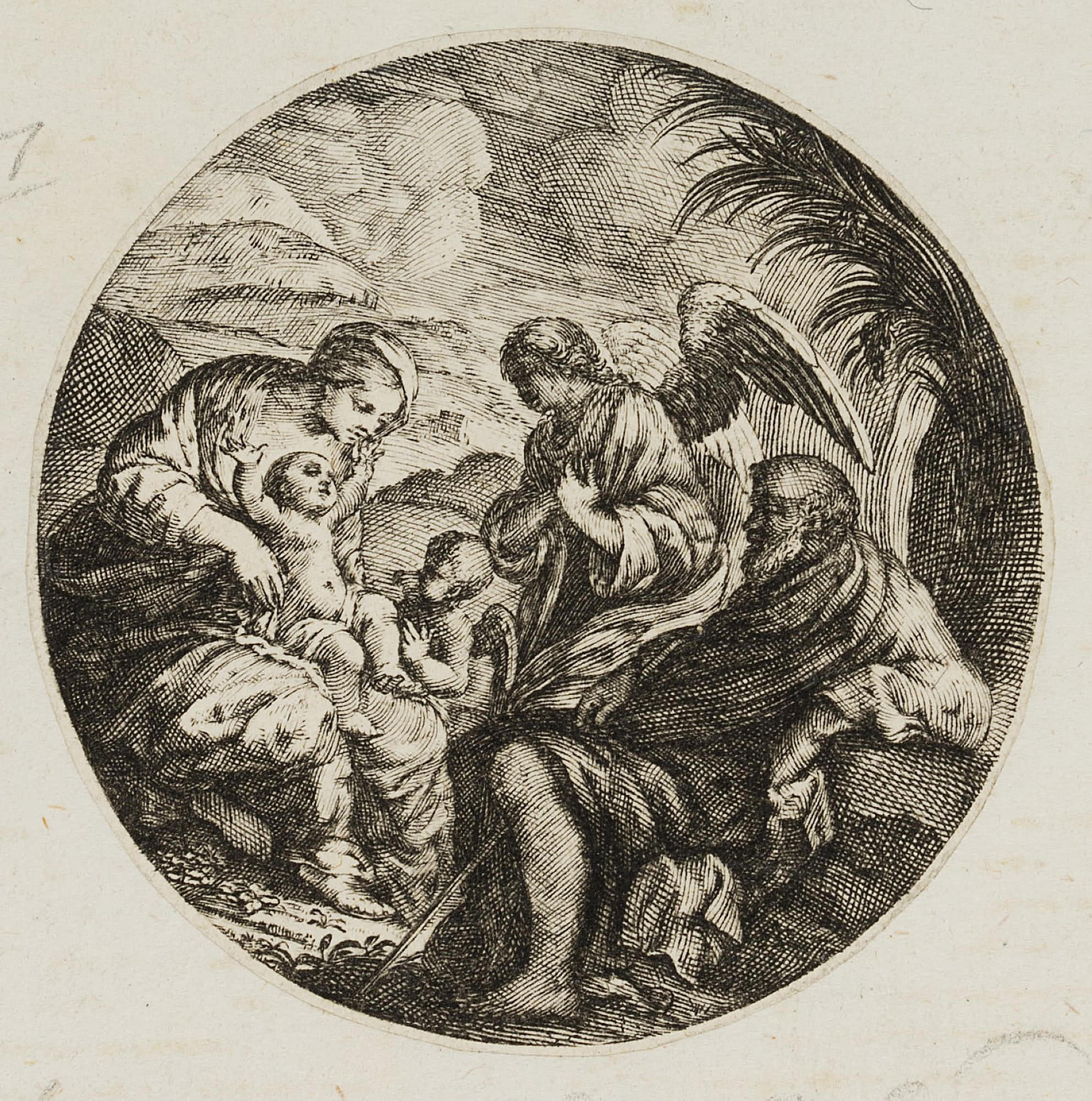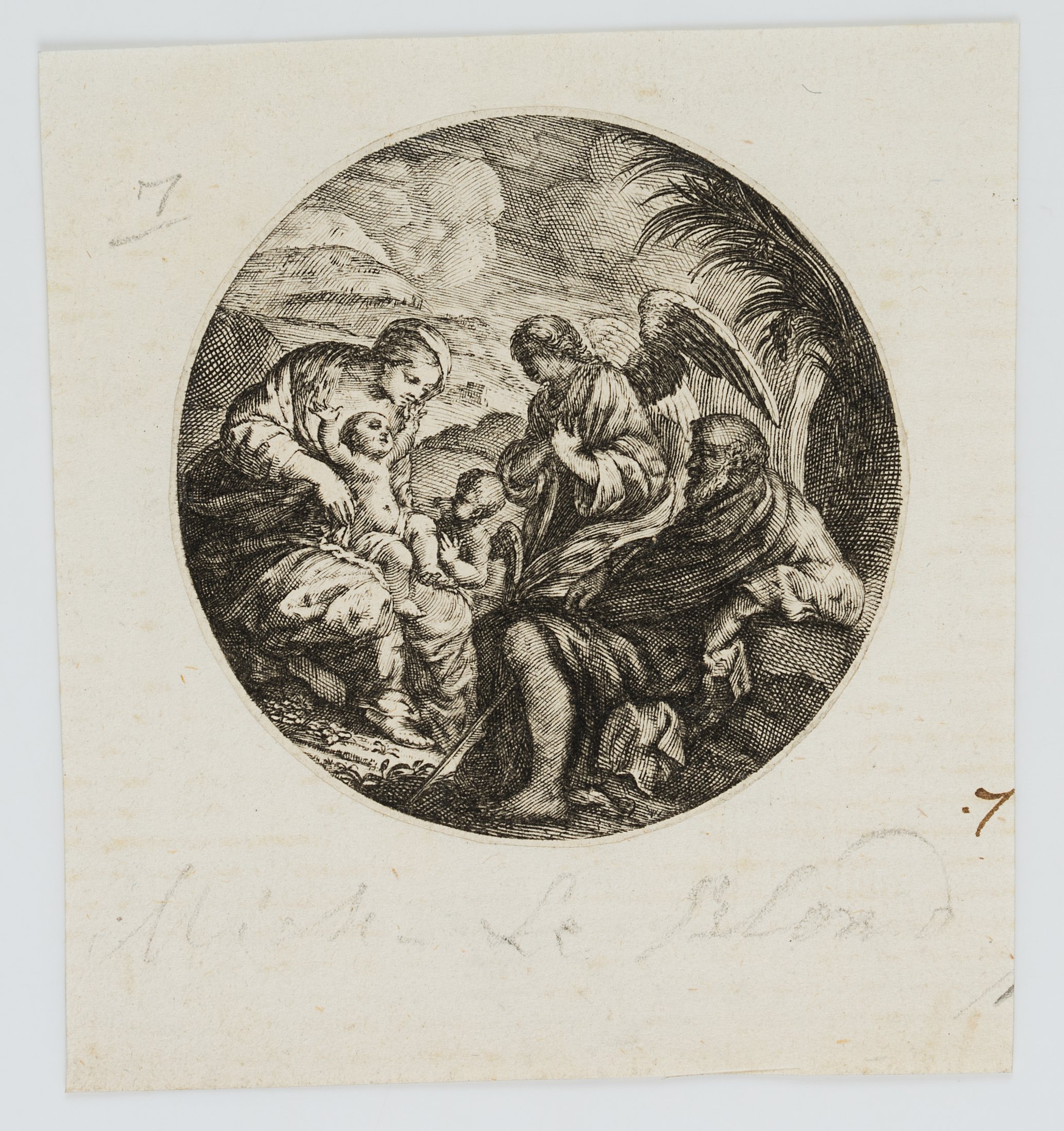 Jean le Blond (1635 Paris – 1709 ) attributed, Holy Family with Angels, 1829, Copper engraving