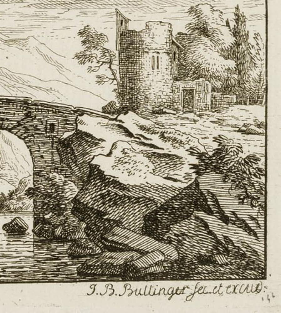 - Bezeichnung: Unterhalb des Bildes rechts mit “J. B. Bullinger fec et excudit” signiert und links mit der Zahl “19” nummeriert.