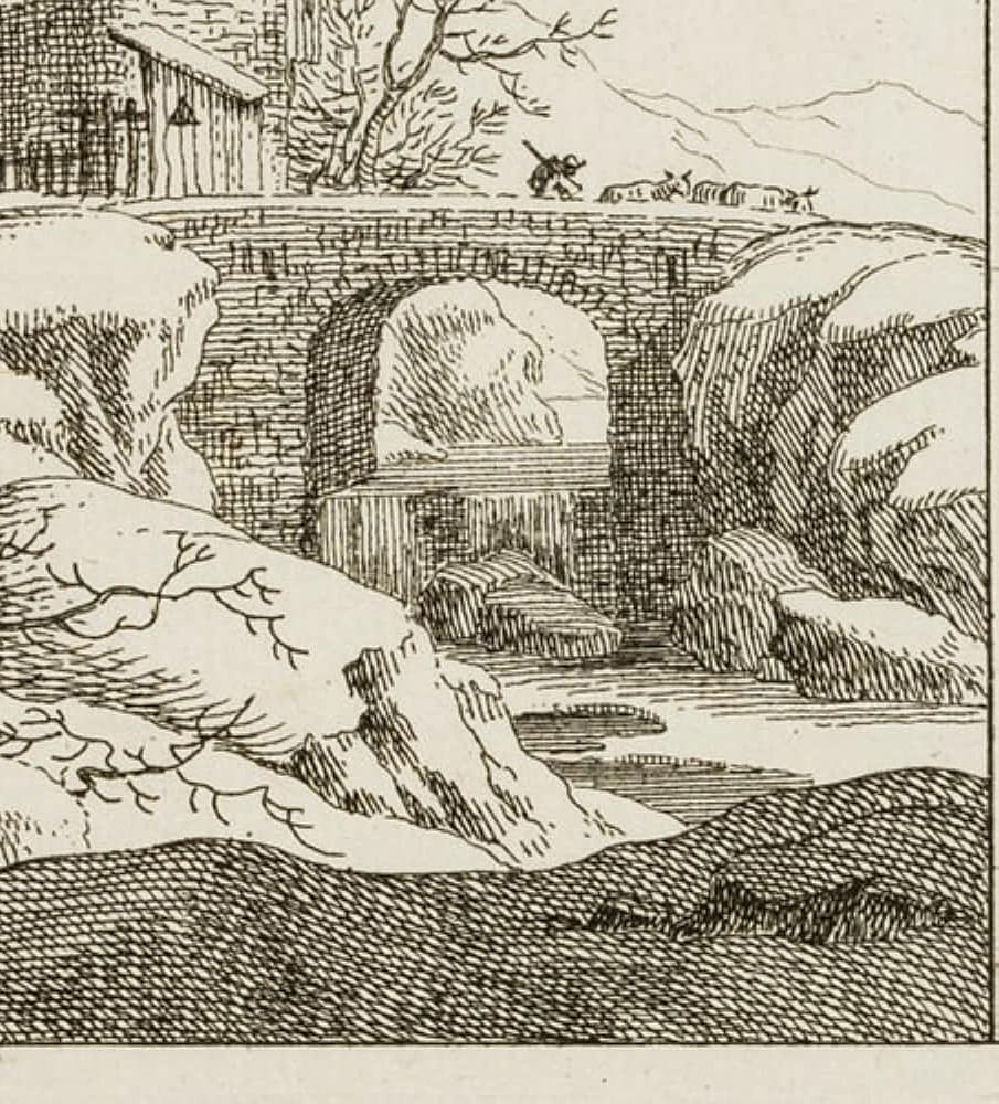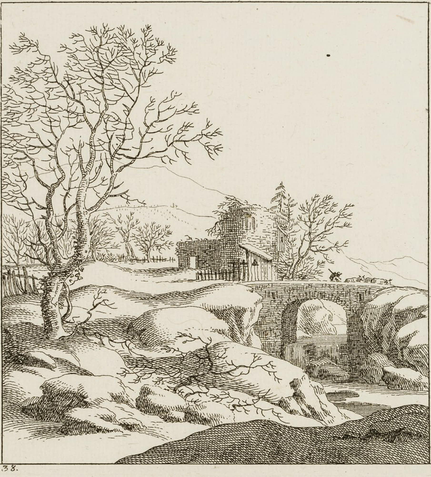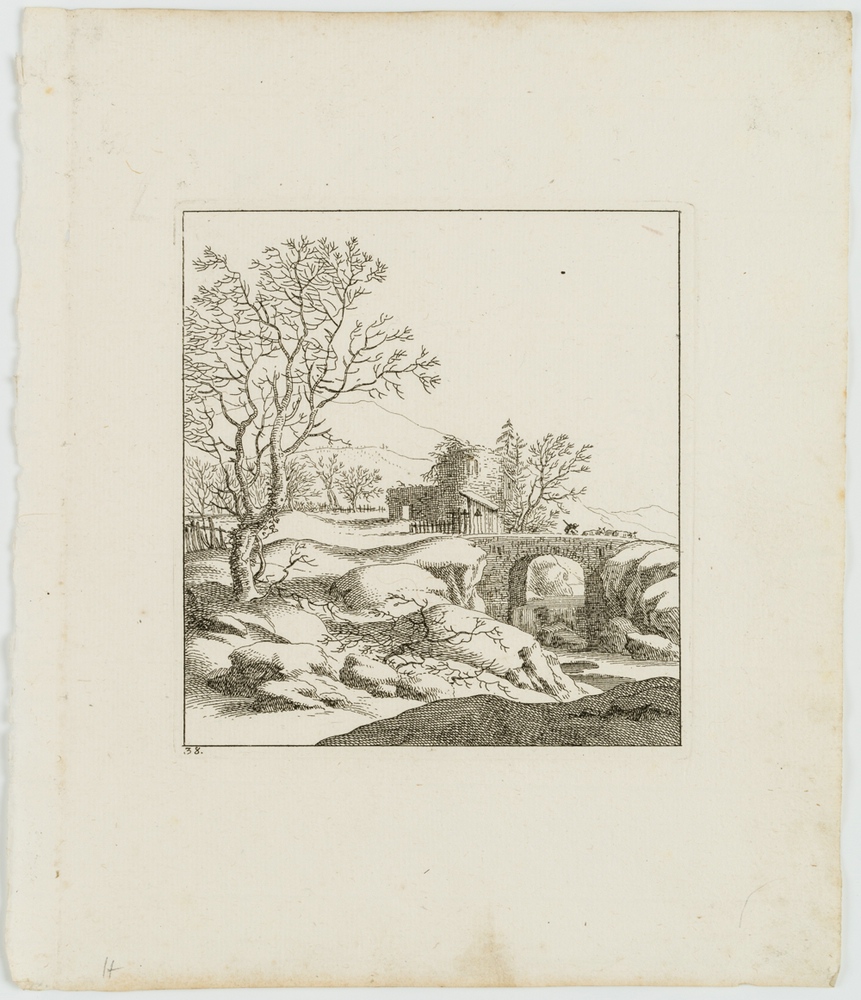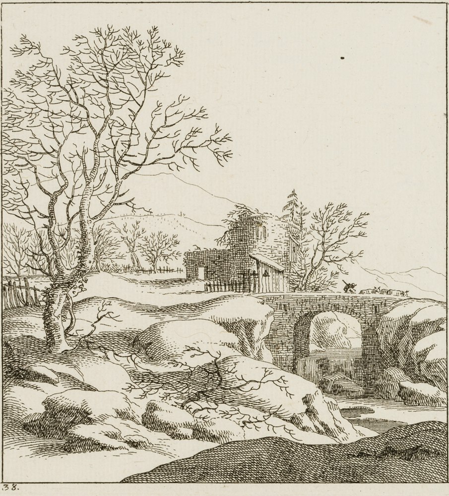 Johann Balthasar Bullinger (1713 – 1793 ), Winter Landscape with Bridge, 18th century, Etching