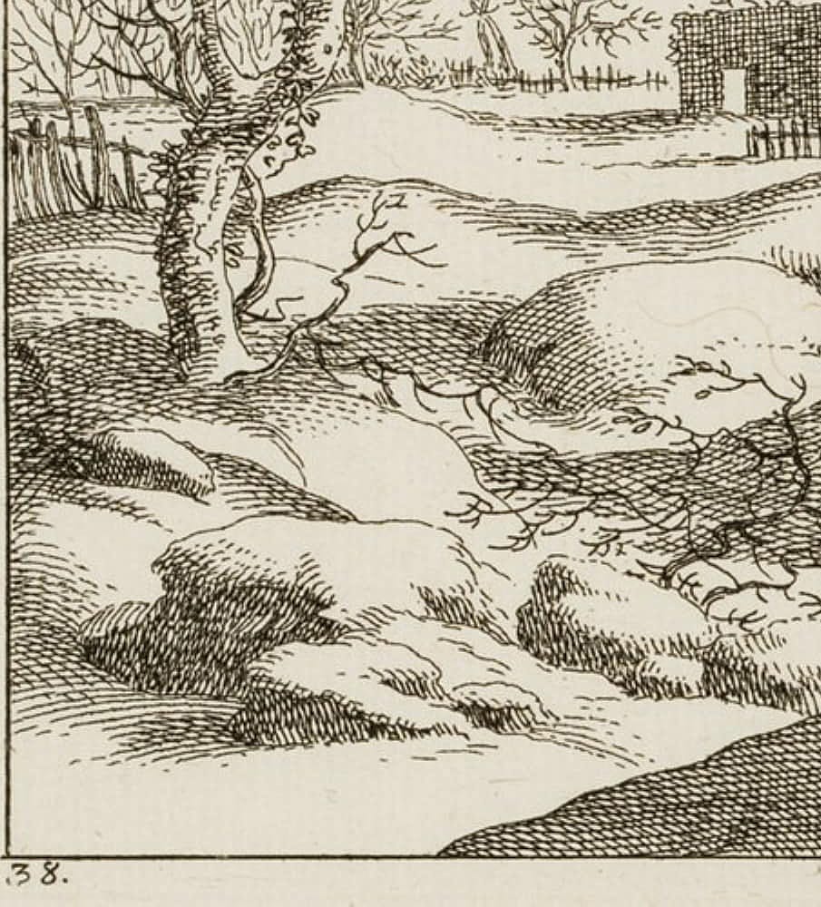 • Bezeichnung: Unterhalb des Bildes links mit der Zahl “38.” nummeriert. Wasserzeichen auf der rechten Blattseite.