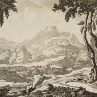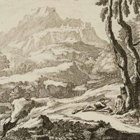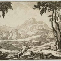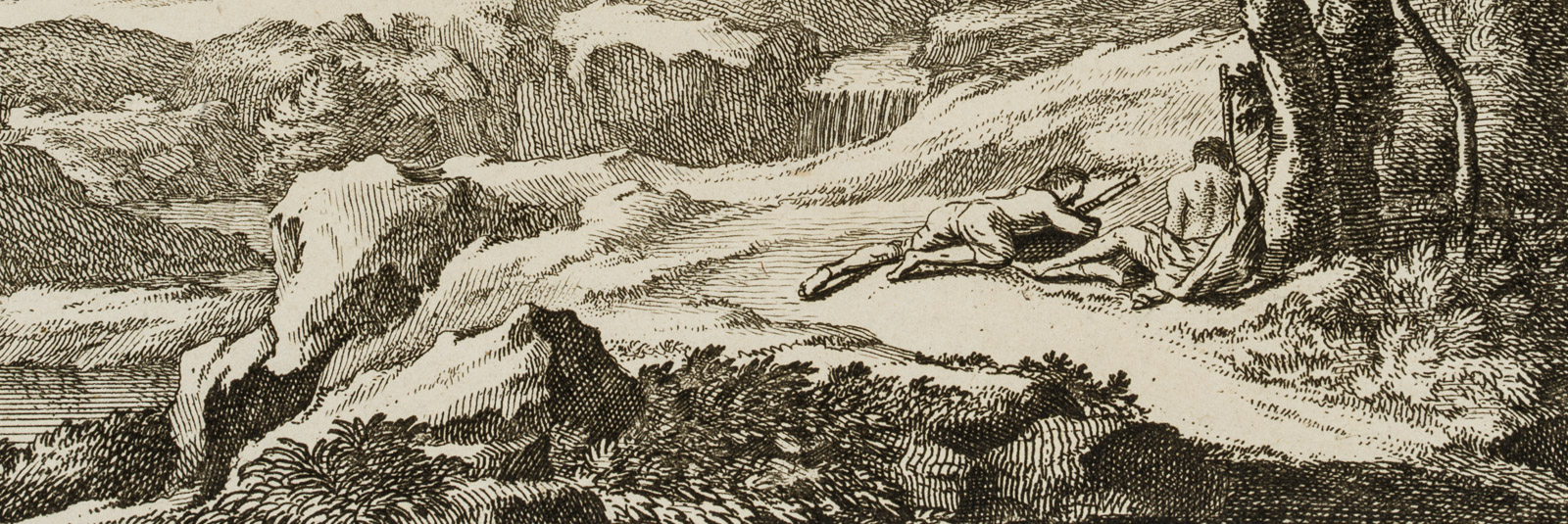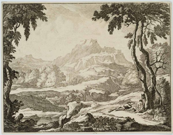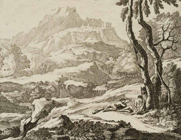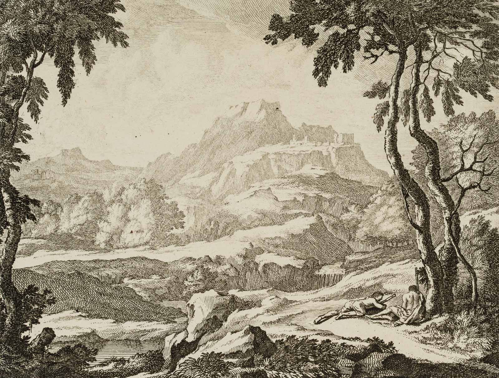 Jan van Call (1656 Nijmegen – 1703 The Hague) attributed, Landscape with two shepherds under a tree, c. 1700, Etching