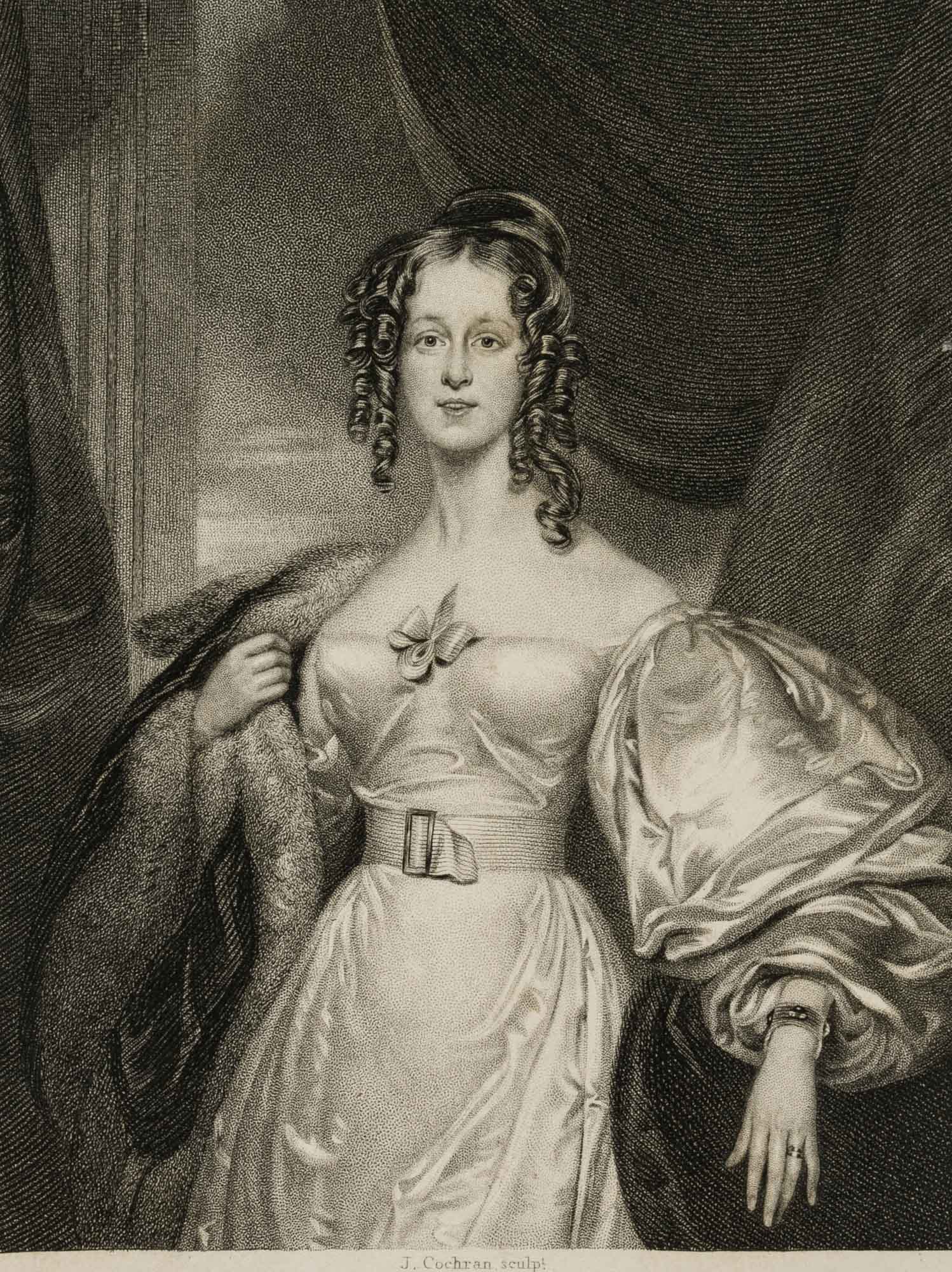 John Cochran (around 1821 – around 1865 ), ‘The Right Honble Hilare Countess Dowager Nelson of Bronte’ Portrait, 1838, Etching