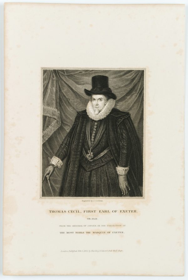 - Bezeichnung: Unten signiert und betitelt: “Thomas Cecil, First Earl of Exeter. OB. 1621. From the Original of Jansen. In the collection of The Most Noble The Marquis of Exeter.”