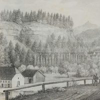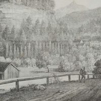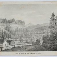 Johann Baptist Dilger (1814 Munich – 1847 ibid.), The Mühlthal near Holzkirchen View of the valley with small village from a hiking trail, 1837, Lithography