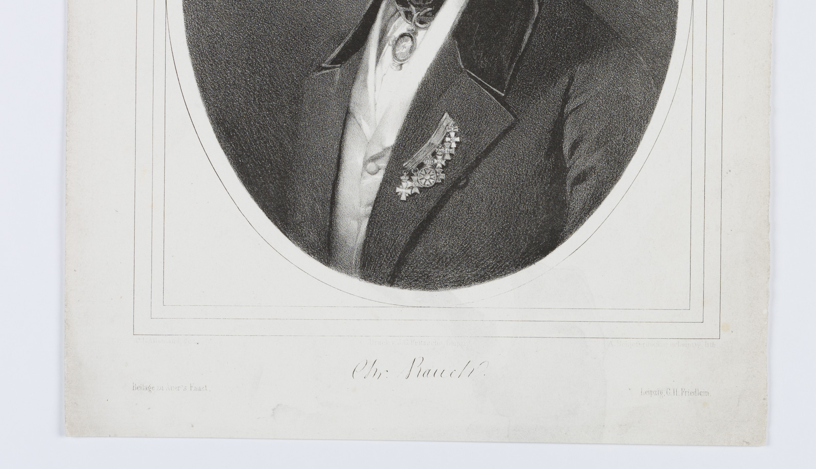 - Bezeichnung: Unterhalb der Darstellung rechts unten signiert und mit der faksimilierten Unterschrift des Dargestellten beschriftet.