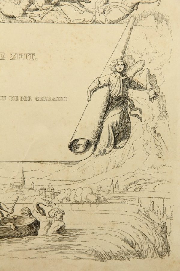 - Description: Thought sheets for our time. Arranged according to words of the Holy Scripture and put into pictures , cover sheet with moralising depictions, etching on paper rolled on paper. Below the illustration in the printing plate with a reference to the “k.k.. Hof- und Staatsdruckerei in Wien” and dated 1856.