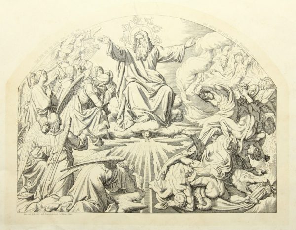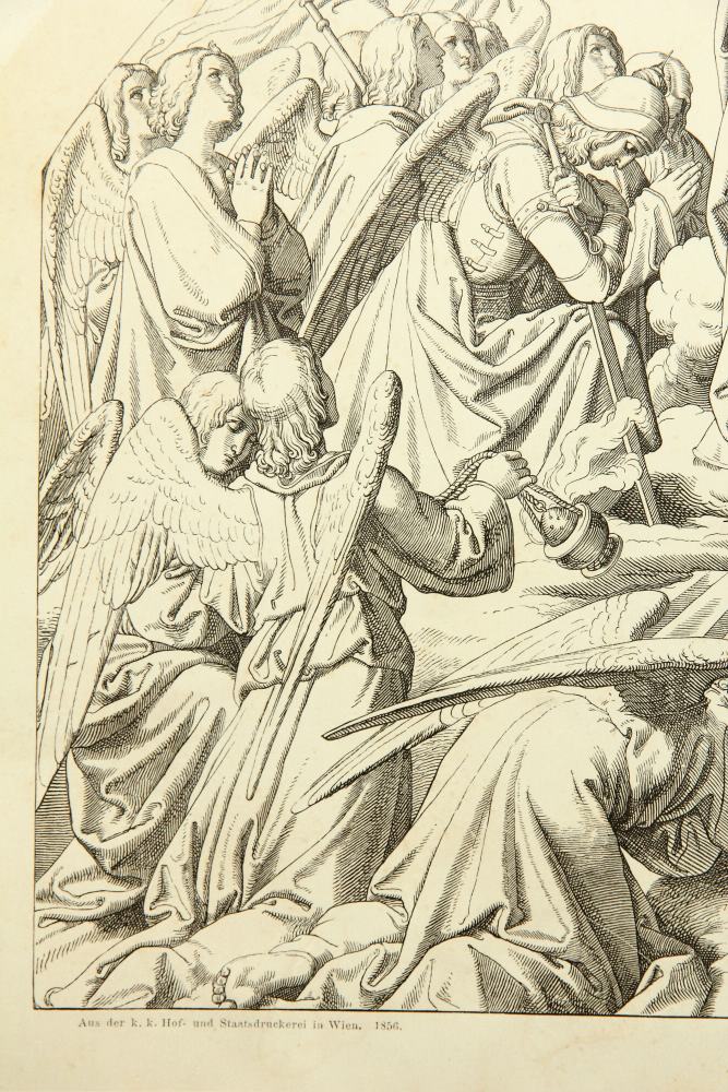 - Inscription: At the edge of the image in the printing plate with Bible quotation “And God saw the light that it was good, and separated the light from the darkness” and reference to the “k.k. Hof und Staatsdruckerei in Wien. Hof- und Staatsdruckerei in Wien” and dated 1856.