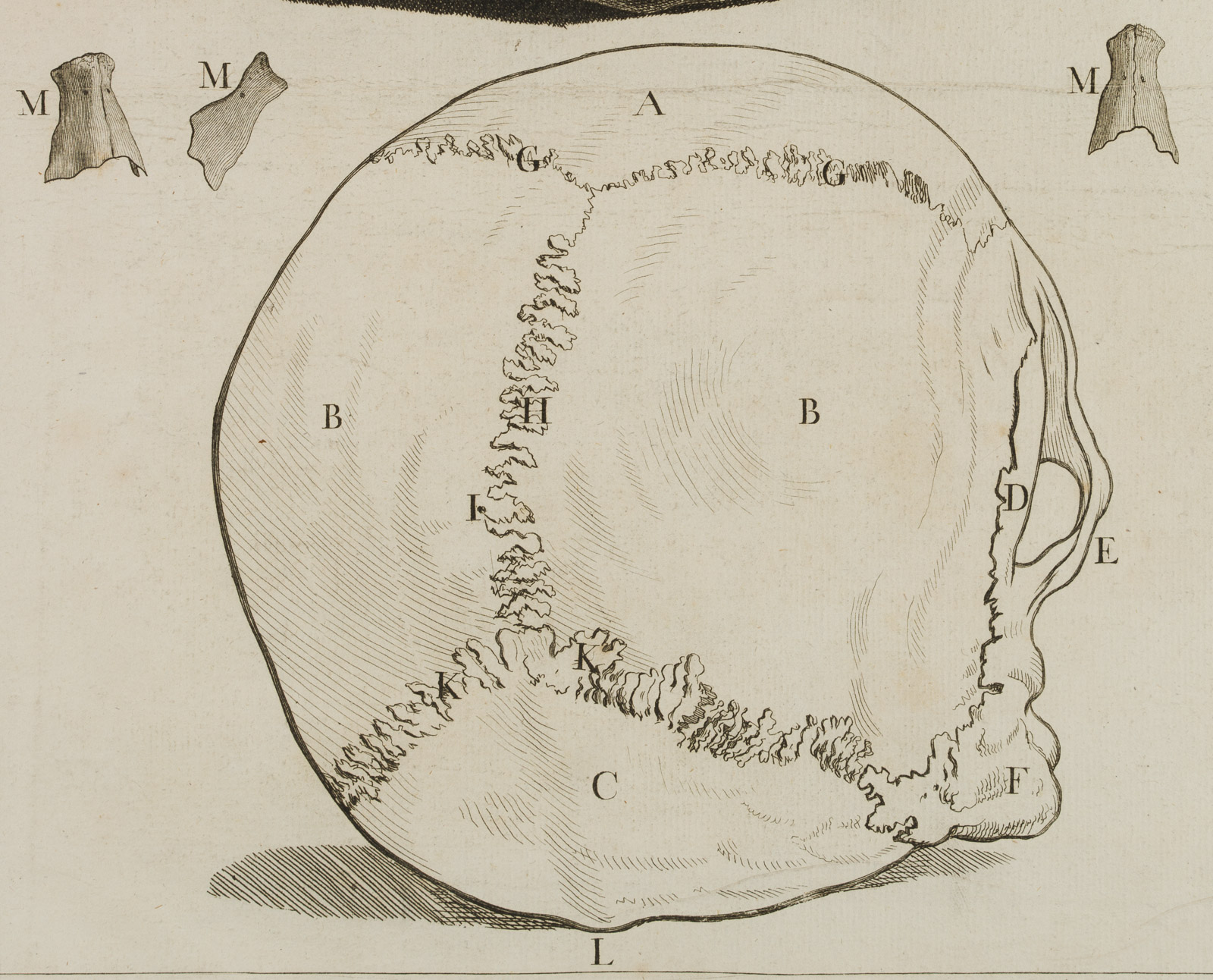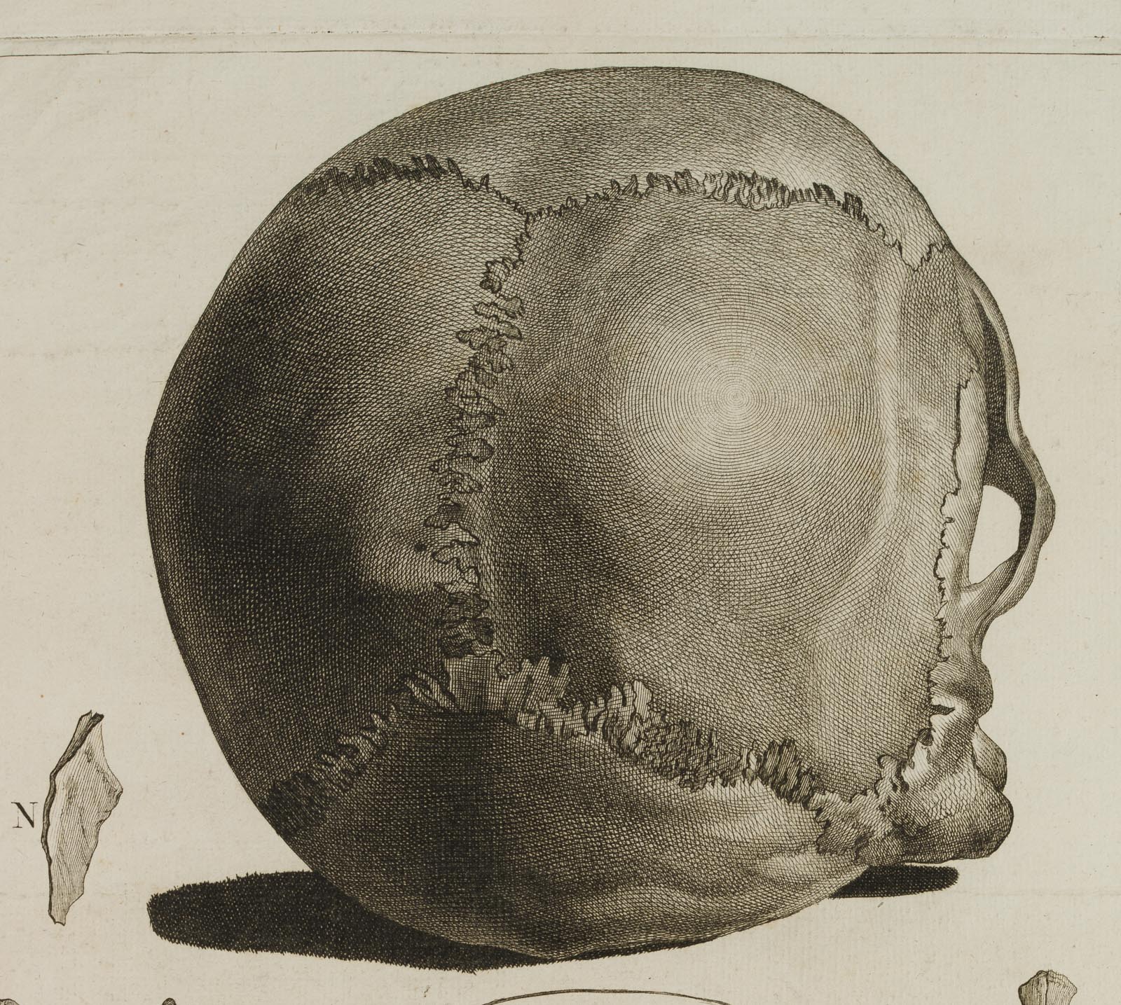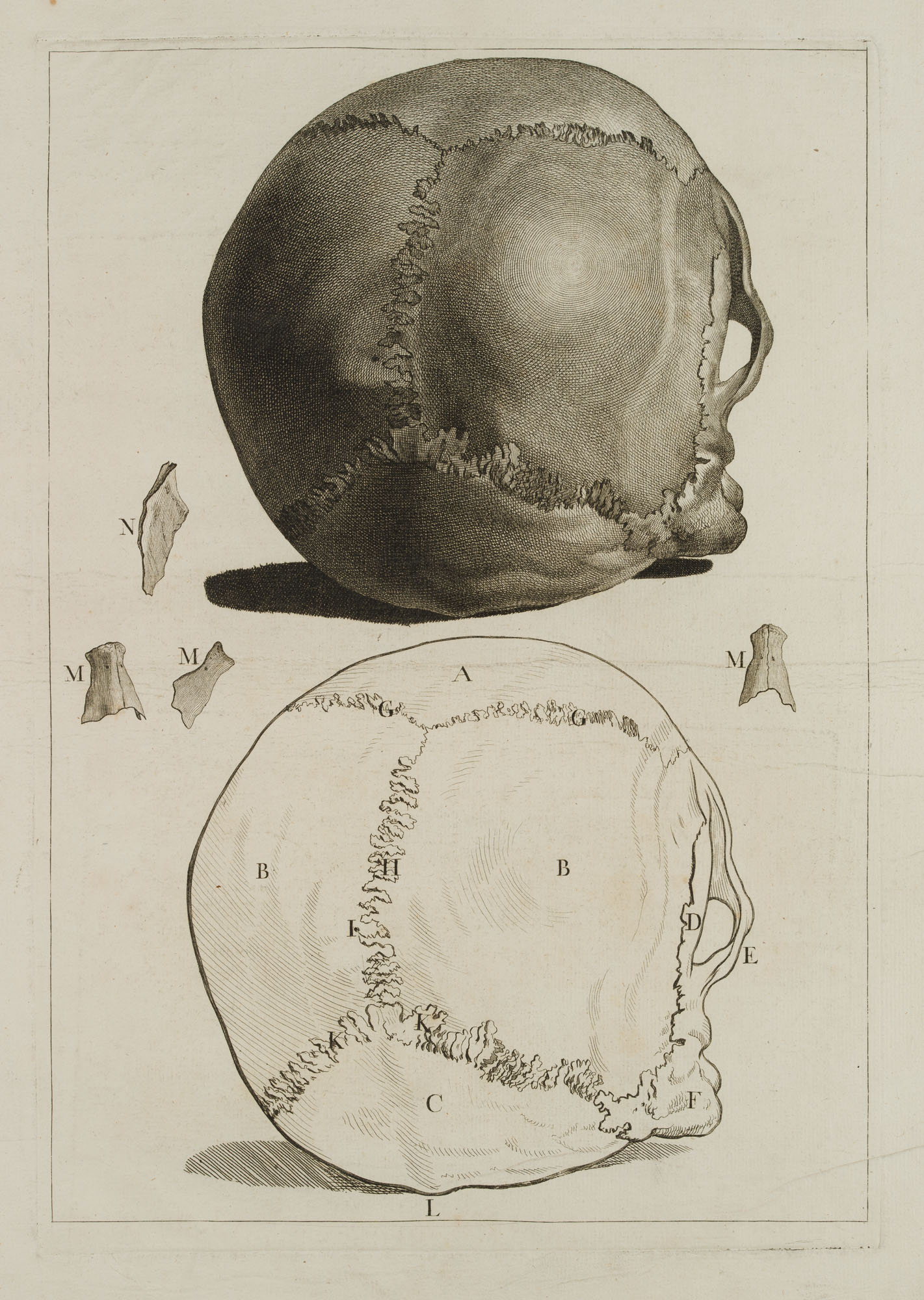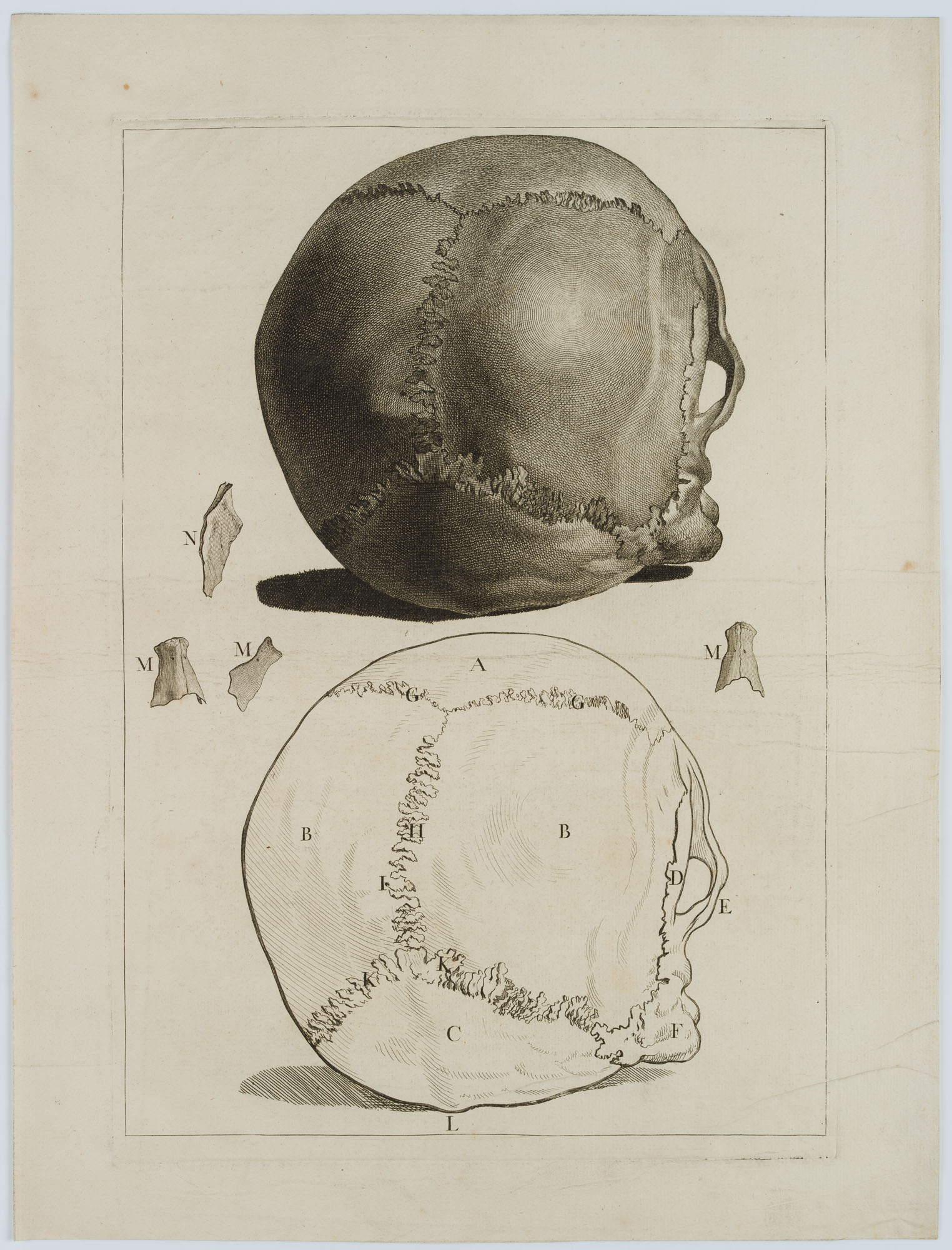 Jacques Gamelin (1738 Carcassonne, Aude – 1803 ibid.), Anatomical studies of the human skull, from the anatomical table work ‘Nouveau recueil d’ostéologie et de myologie’ (A New Collection of Bones and Muscles), 1779, Etching