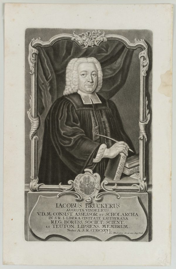 Johann Jakob Haid (1704 Kleineislingen – 1767 Augsburg), Portrait of the German Protestant theologian Johann Jakob Brucker (1696 Augsburg – 1770 ibid), school rector and historian of philosophy, c. 1750, Mezzotint