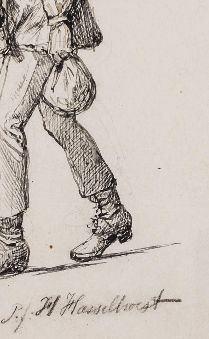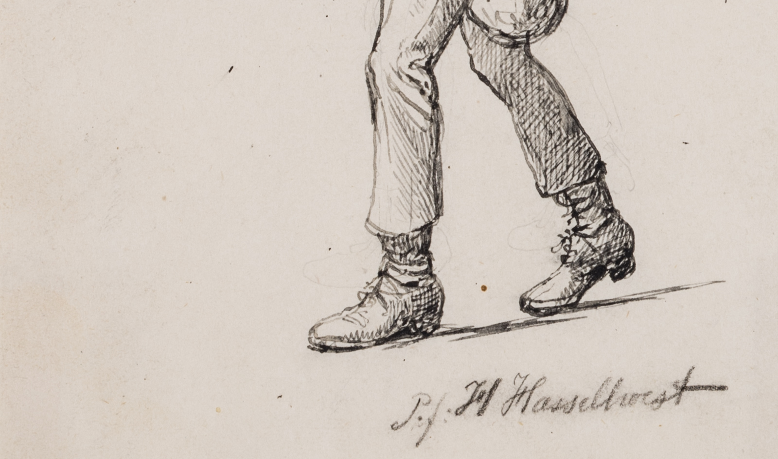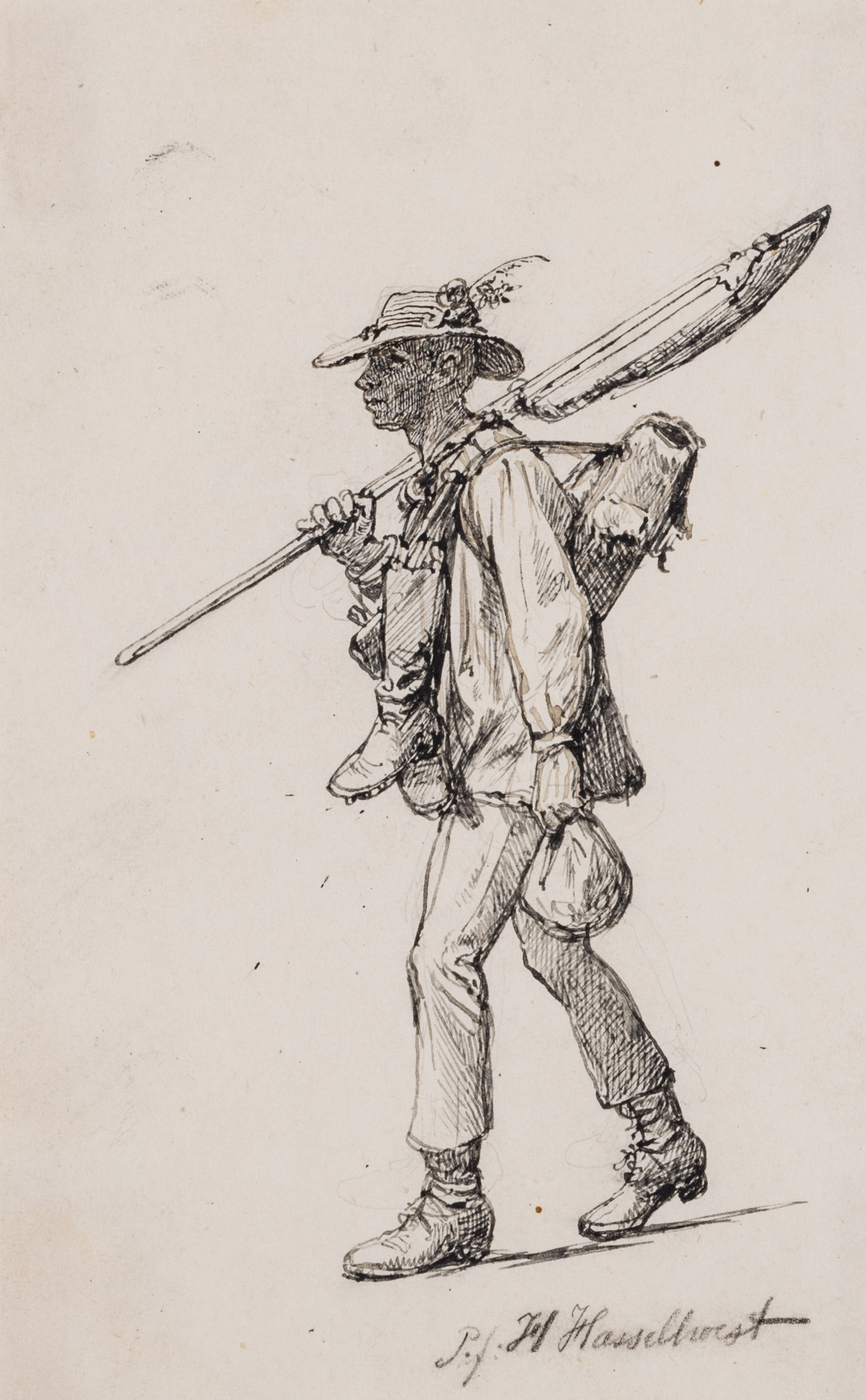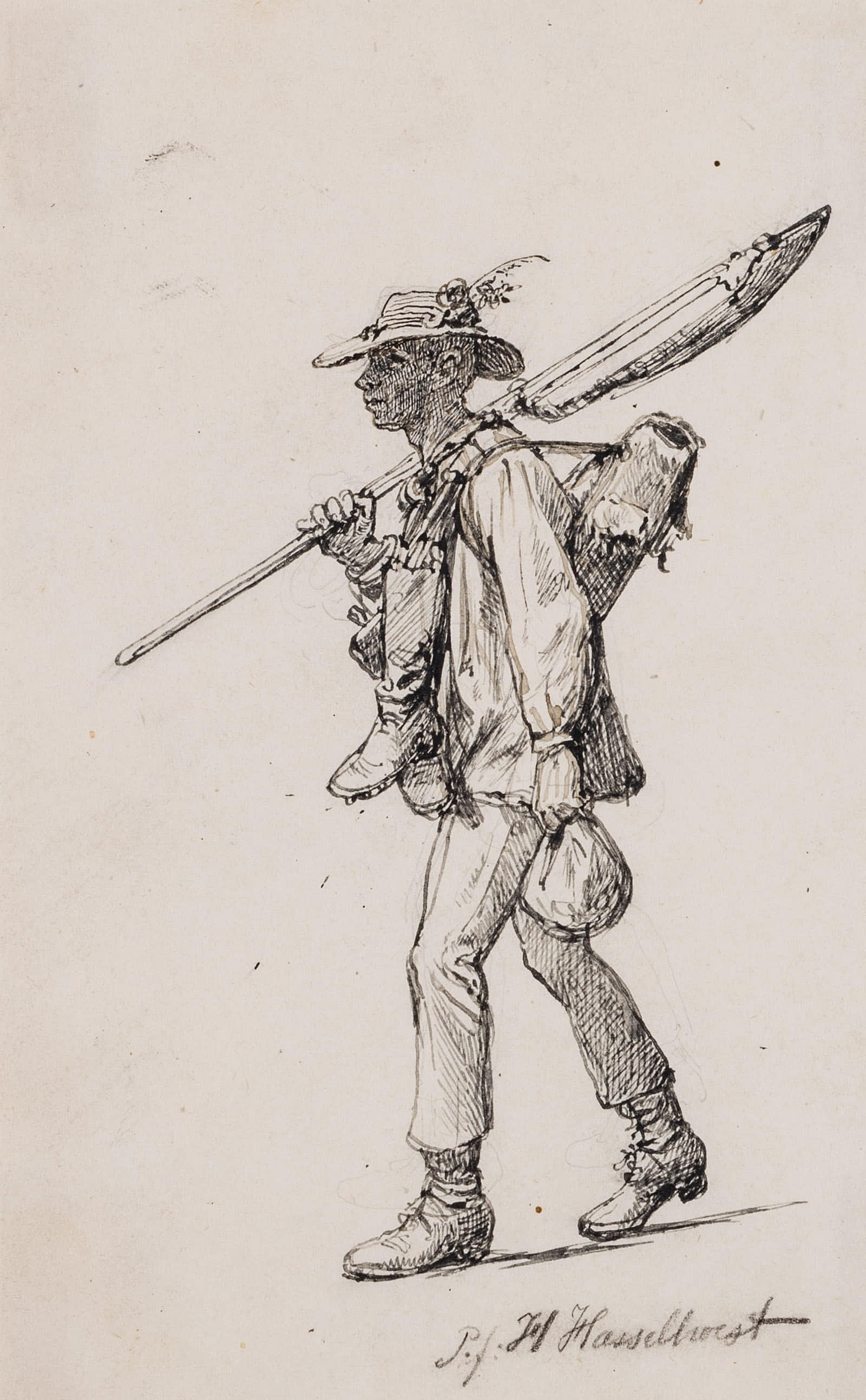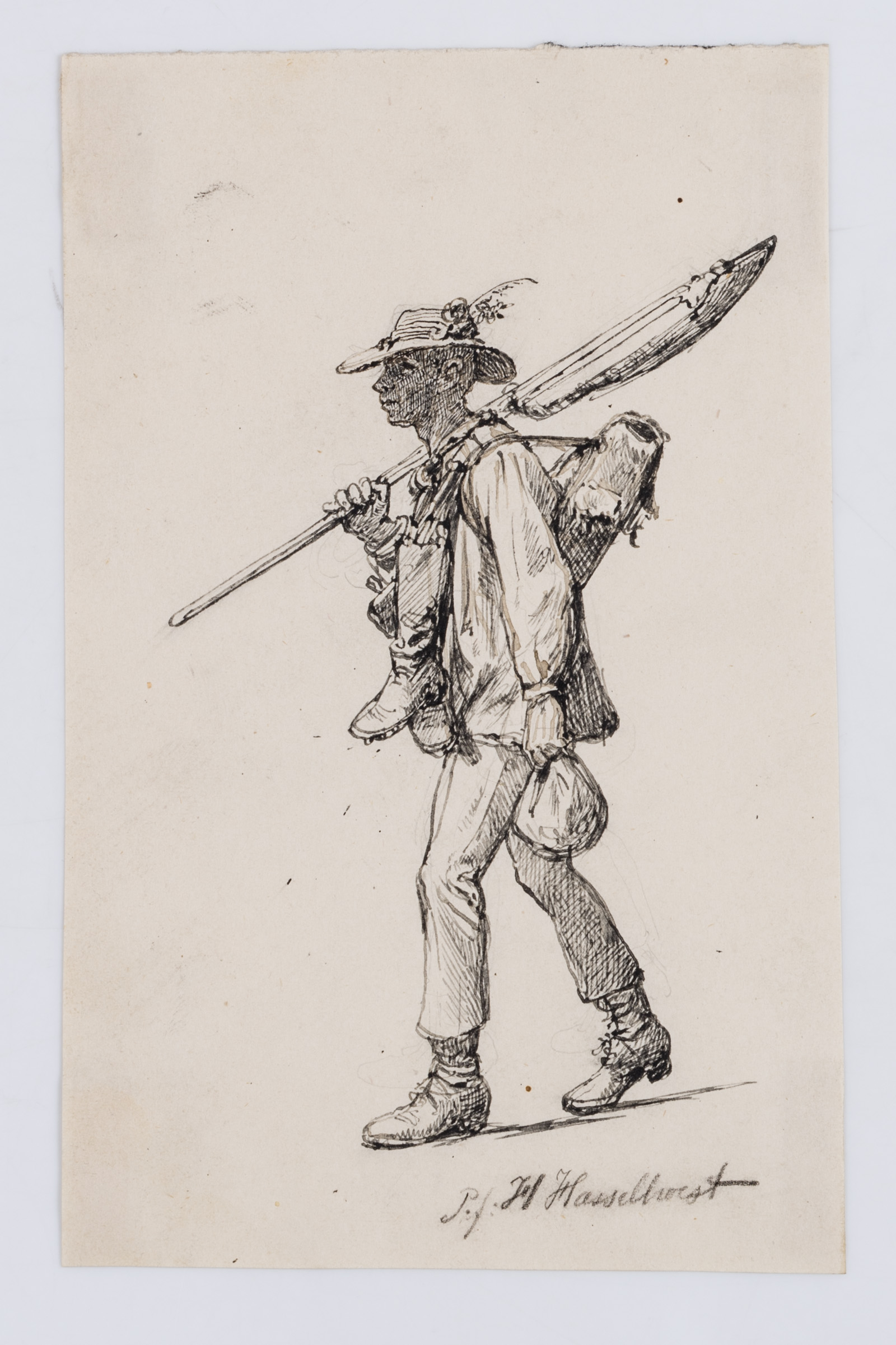 J. HASSELHORST (*1825), Studie eines Kescherfischers im Profil, Romantik