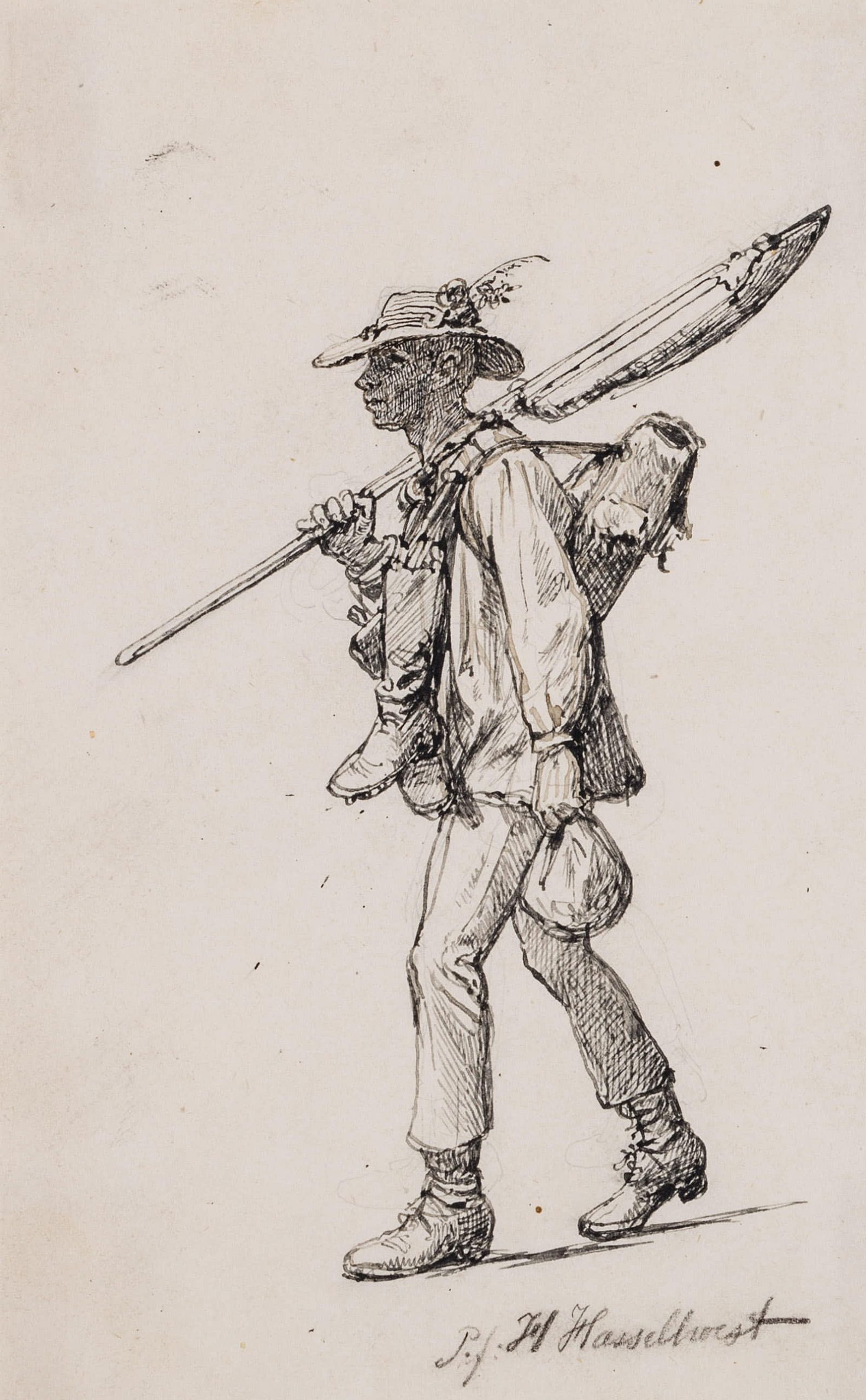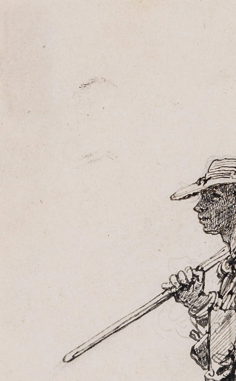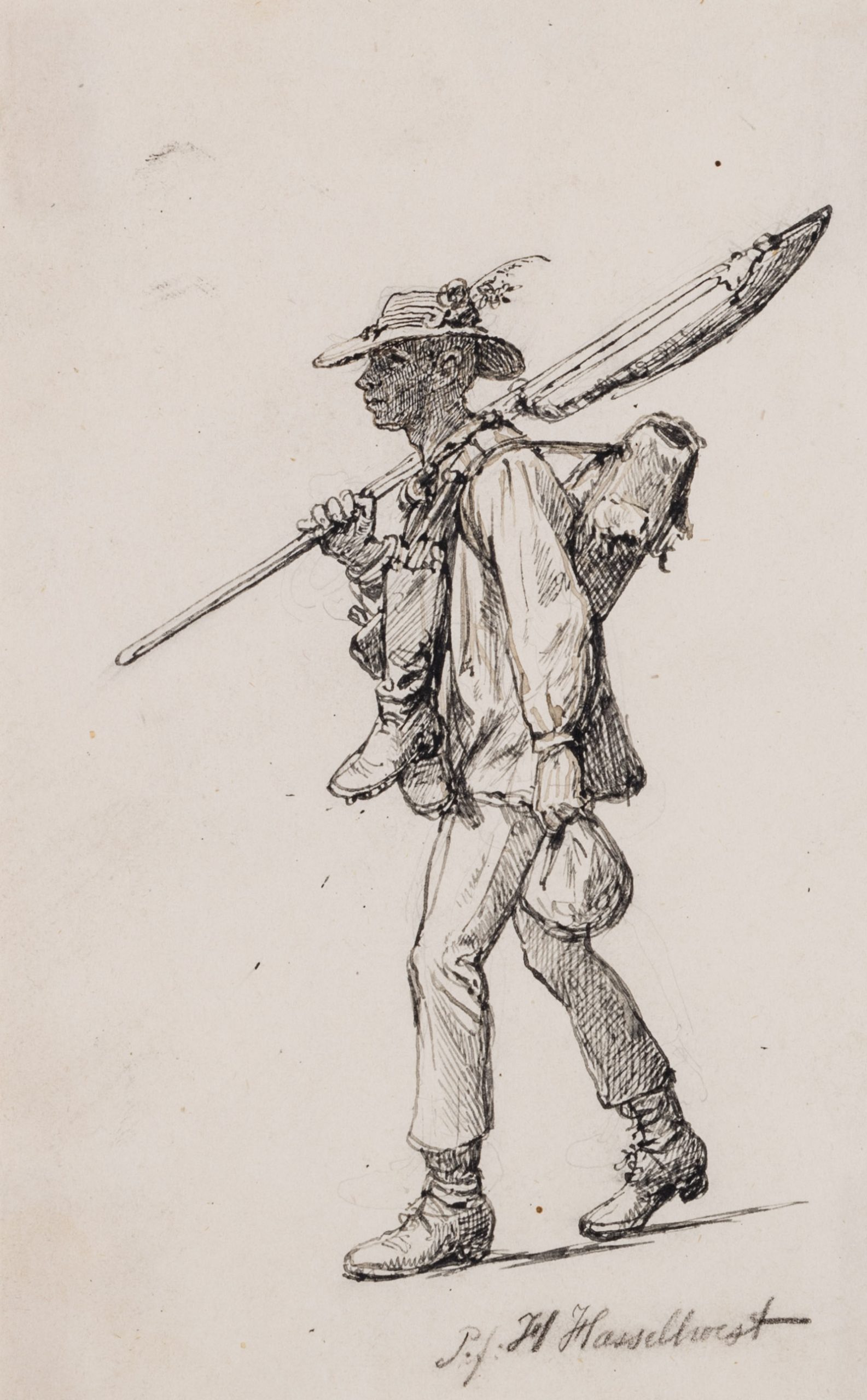 Johann Heinrich Hasselhorst (1825 Frankfurt on the Main – 1904 ibid.), Study of a landing net fisherman in profile, 19th century, Indian ink