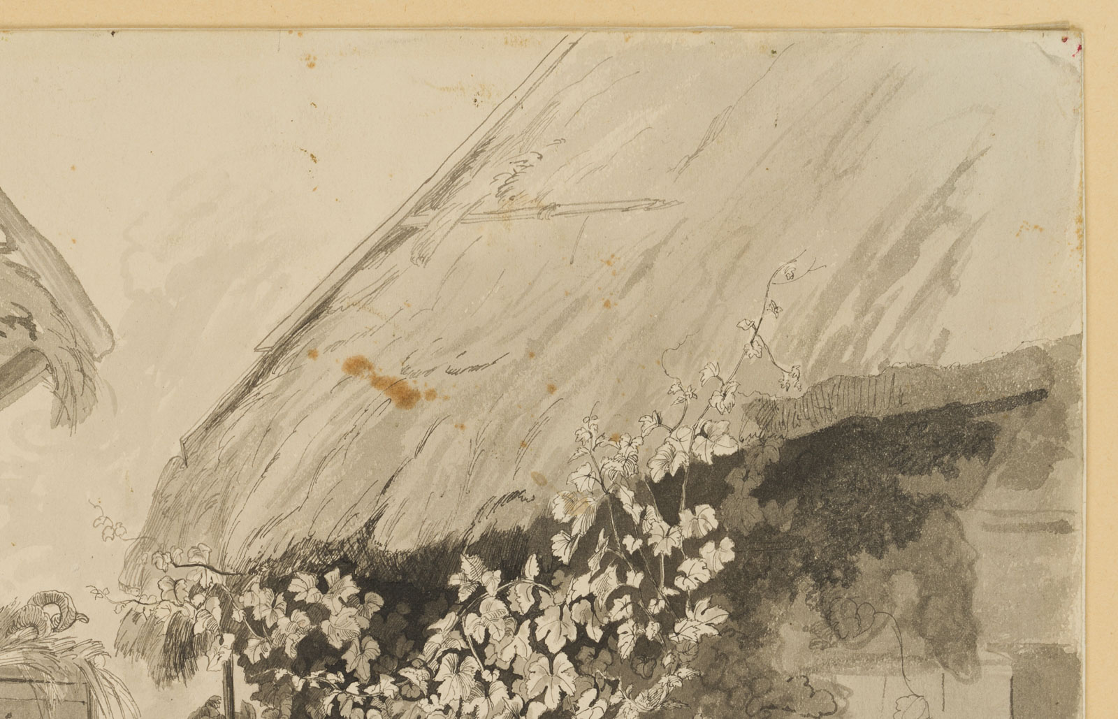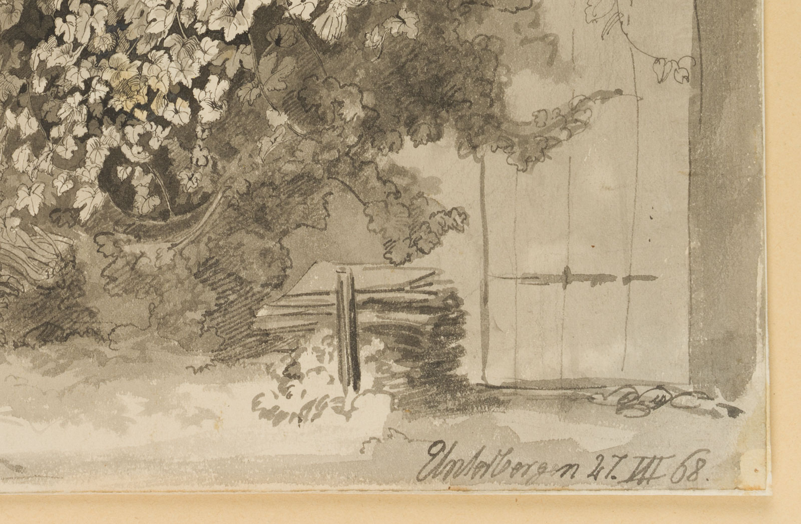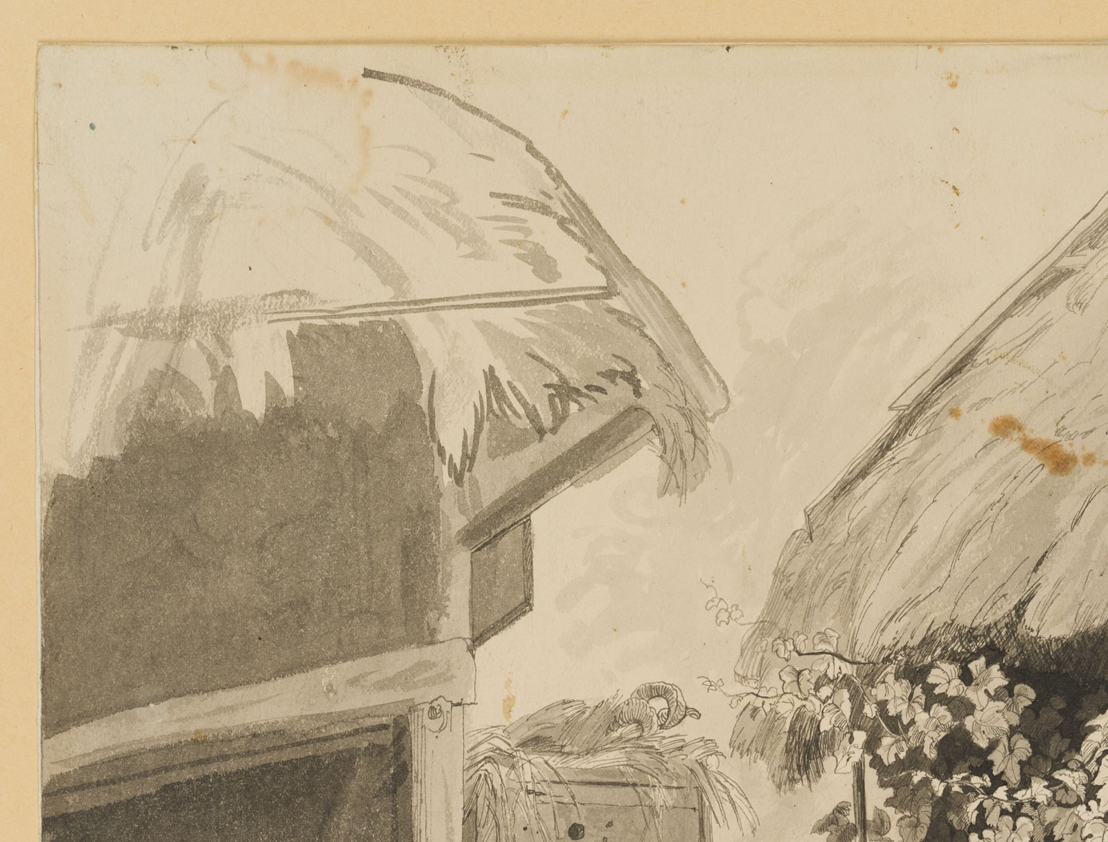 - Beschreibung: Äußerst virtuos ausgeführte Tuschezeichnung, besonders im Kontrast der großzügig behandelten Dunkelheiten zu den den fein gezeichneten besonnten Details enthüllt sich die Könnerschaft des Künstlers.
