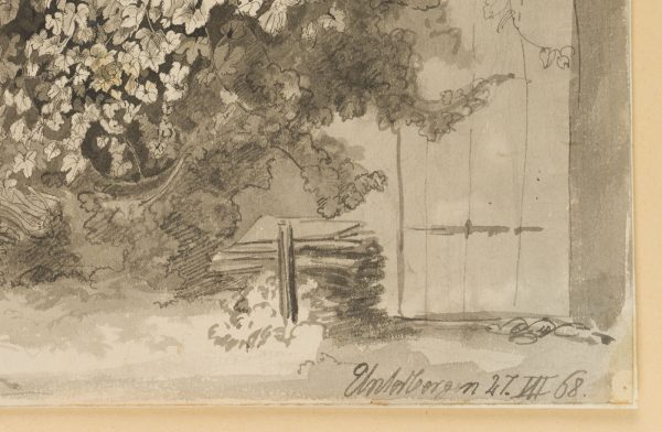 - Bezeichnung: Rechts unten bezeichnet “Unterbergen 27.VII.68.” Teil des alten Passepartouts mit dem Nachlasstempel “AUS DEM NACHLASS DES JOSEF HEILMAIR.” beigefügt.