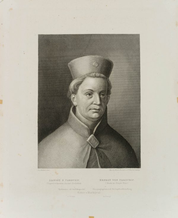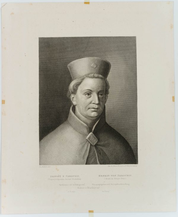 - Inscription: Inscribed below the image: “Jos. Hellich fecit. / From the Art Institute of C. F. Merckel Leipzig”. Titled below: “Ernest von Pardubic. / (Bust in Prague Cathedral) / Published by the publishing bookshop Kober & Markgraf in Prague”.