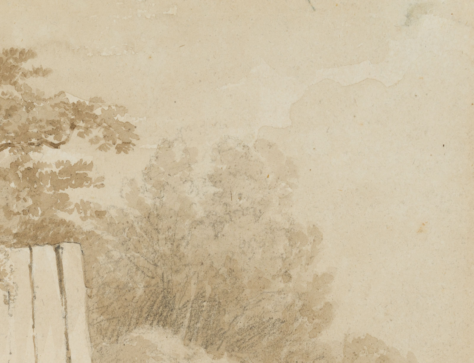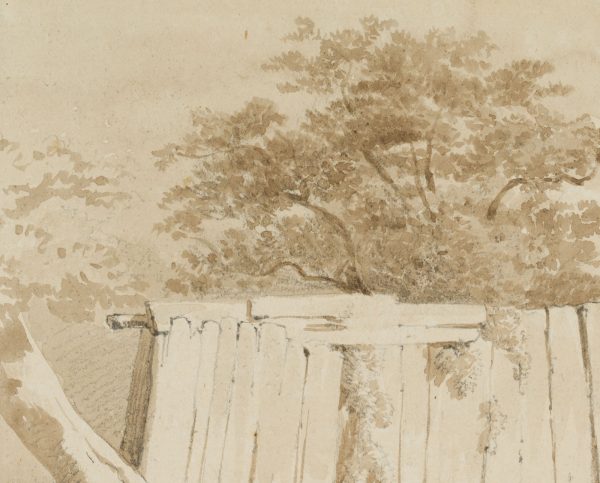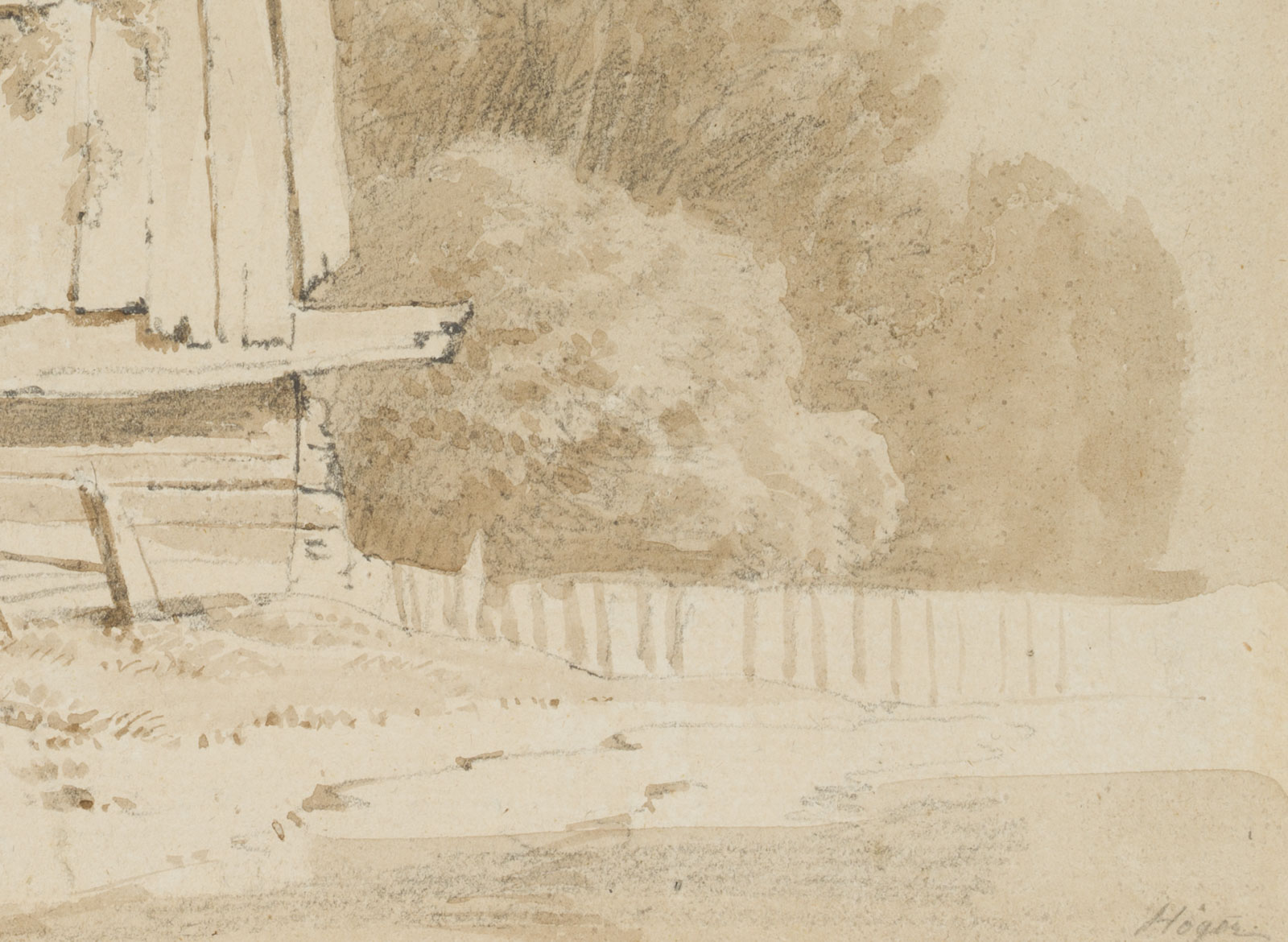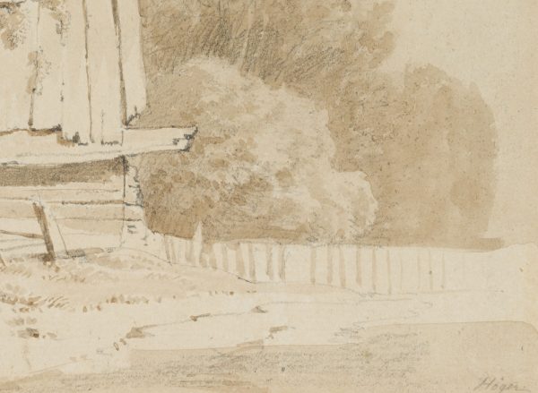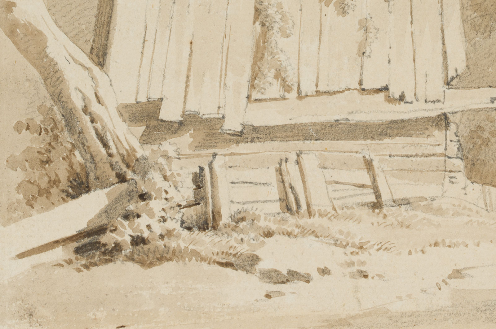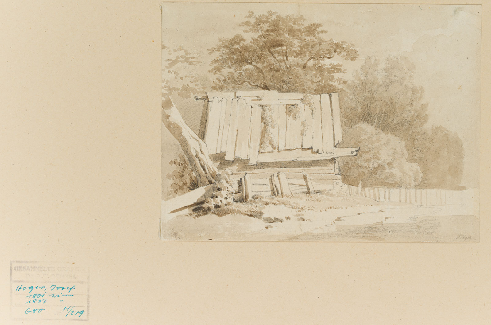 Joseph Höger (1801 Wien – 1877 ebd.), Alter Holzschuppen am Waldrand, 19. Jahrhundert, Tusche