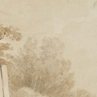- Beschreibung: Sensible Wiedergabe einer zerfallenden Kate am Rande einer Viehweide.