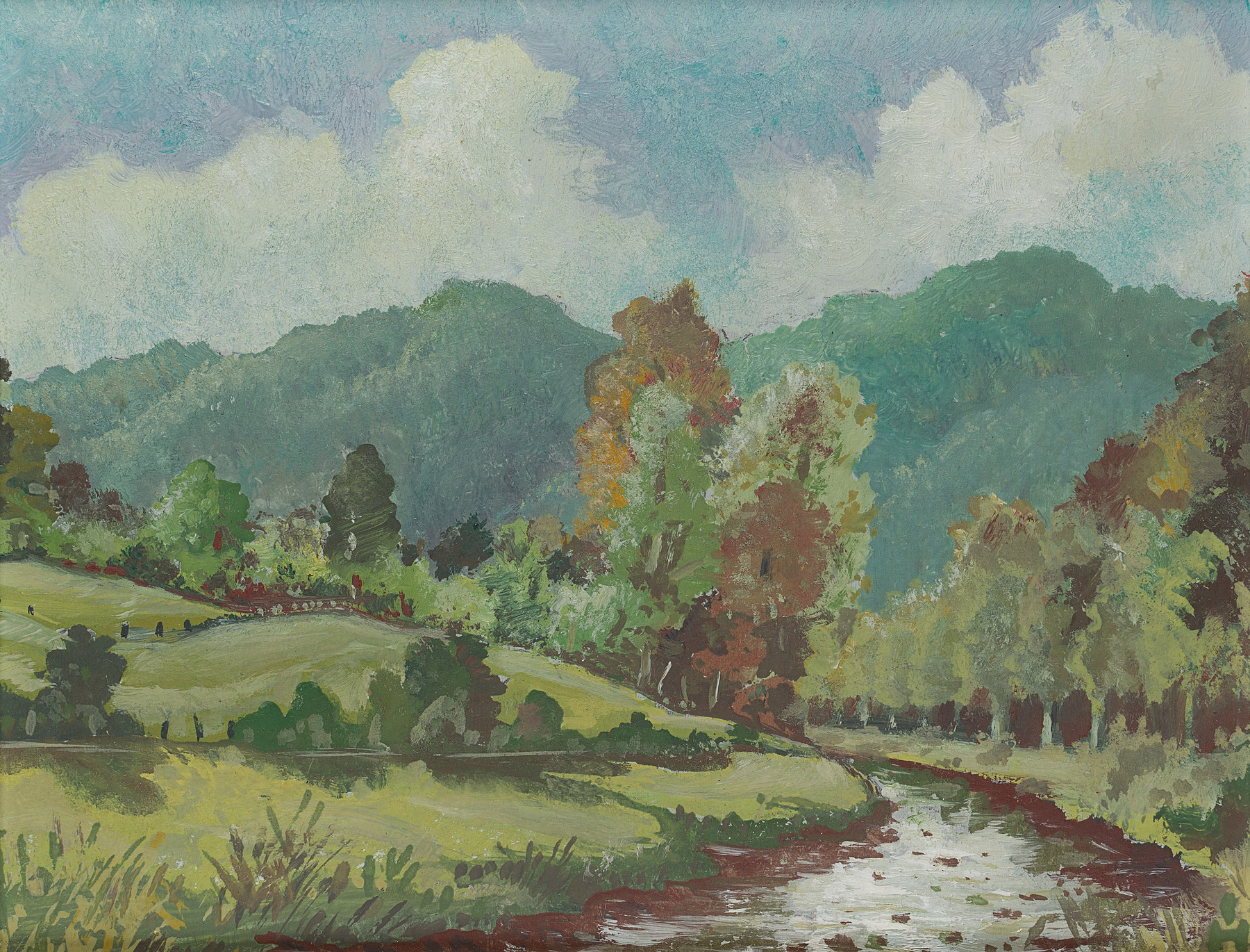 Josef Hötgen (20. Jahrhundert), Partie im Hönnetal im Sauerland, um 1960, Öl