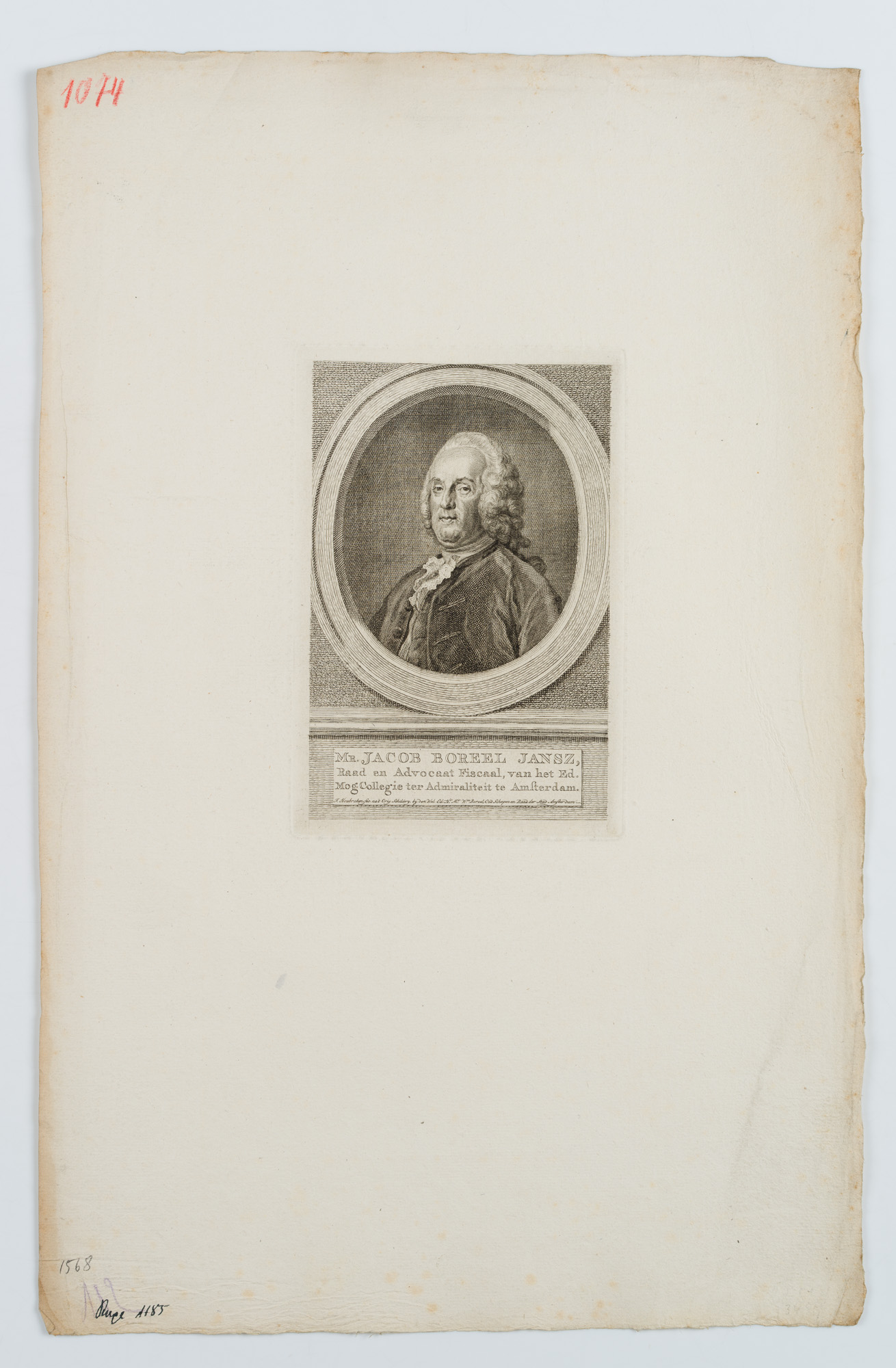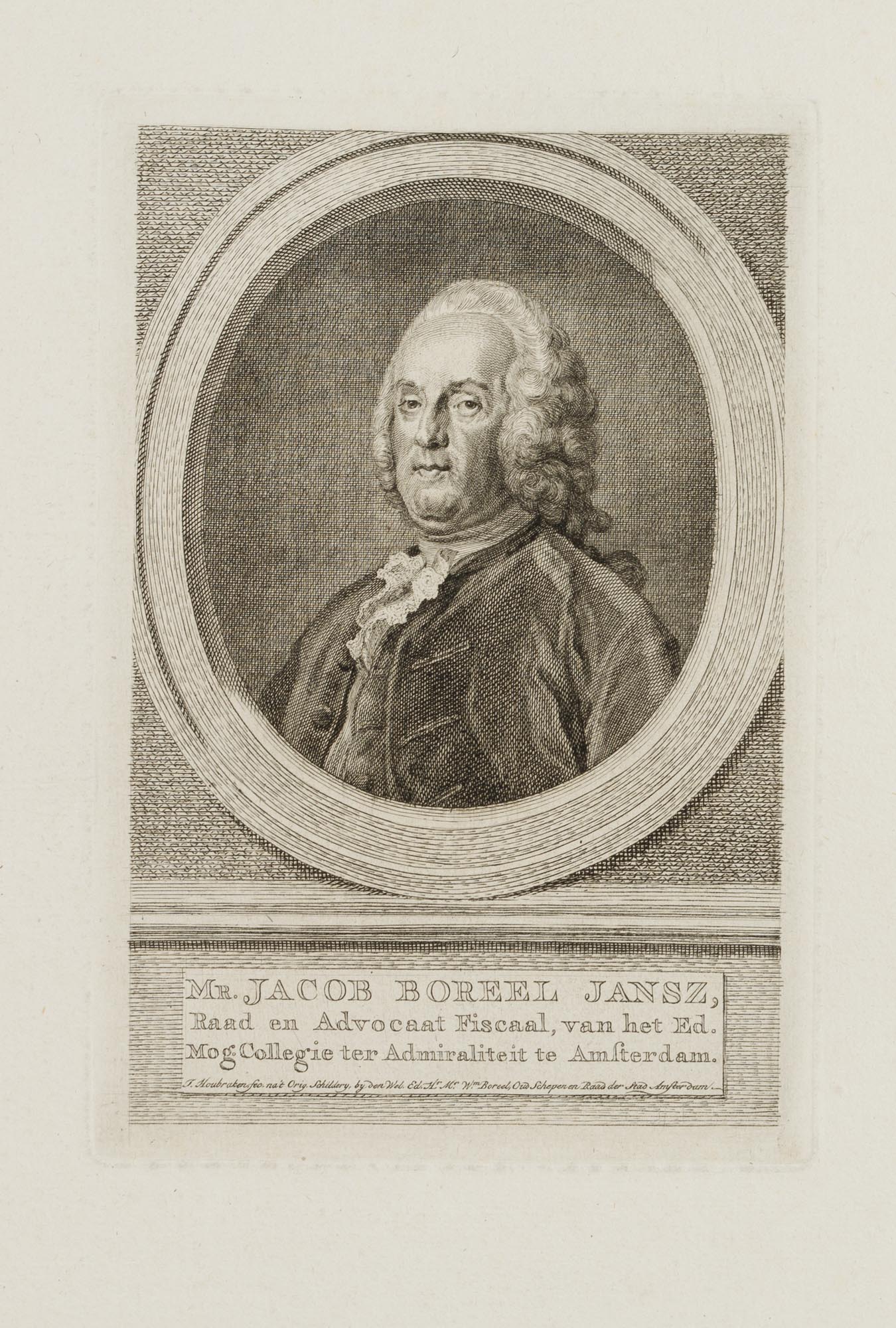 Jacobus Houbraken (1698 Dordrecht – 1780 Amsterdam), Portrait of the jurist Jacob Boreel Jansz (1711 – 1778). Bust in oval in three-quarter profile to the left. With allonge wig and neck ribbon, 18th century, Copper engraving