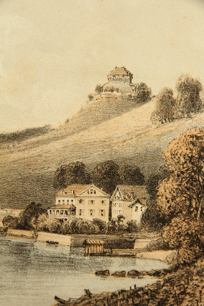 Jean Jacottet (1806 Paris – 1880 ebd.), Ufer des Genfersees und Schloss Châtelard, 19. Jahrhundert, Lithographie