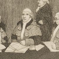 • Description: The illustration shows the senators of the second division of the Inner House of the Court of Session, Scotland’s highest civil court, in the courtroom. The Scottish caricaturist and engraver John Kay, who created the print, was known for his caricatures of events and Edinburgh society.