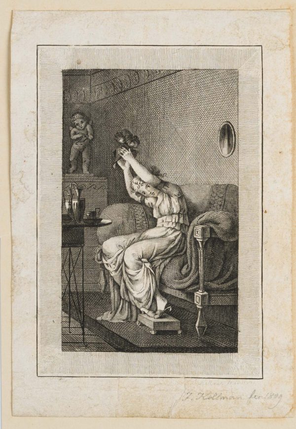 J. Kollmann (19. Jahrhundert), Buchillustration, Dame im Interieur, 1809, Radierung