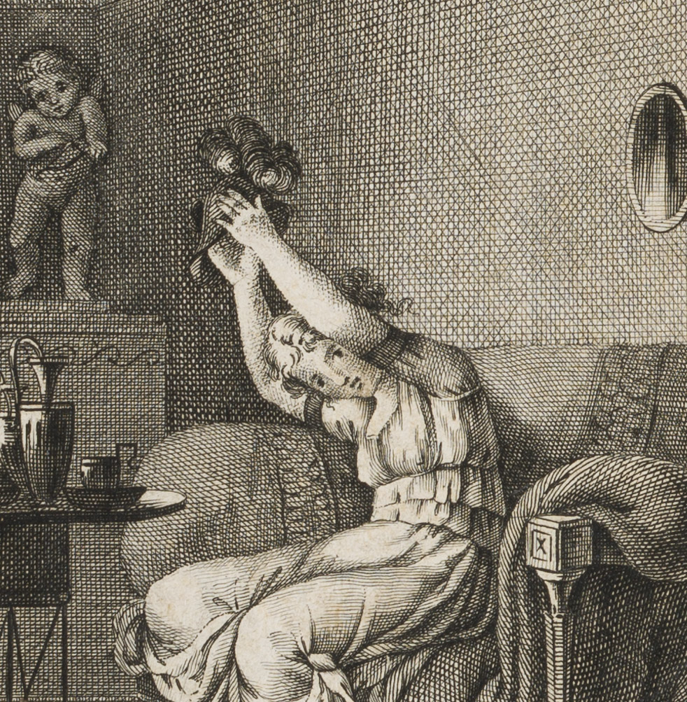 J. Kollmann (19th century), Book illustration, lady in interior, 1809, Etching