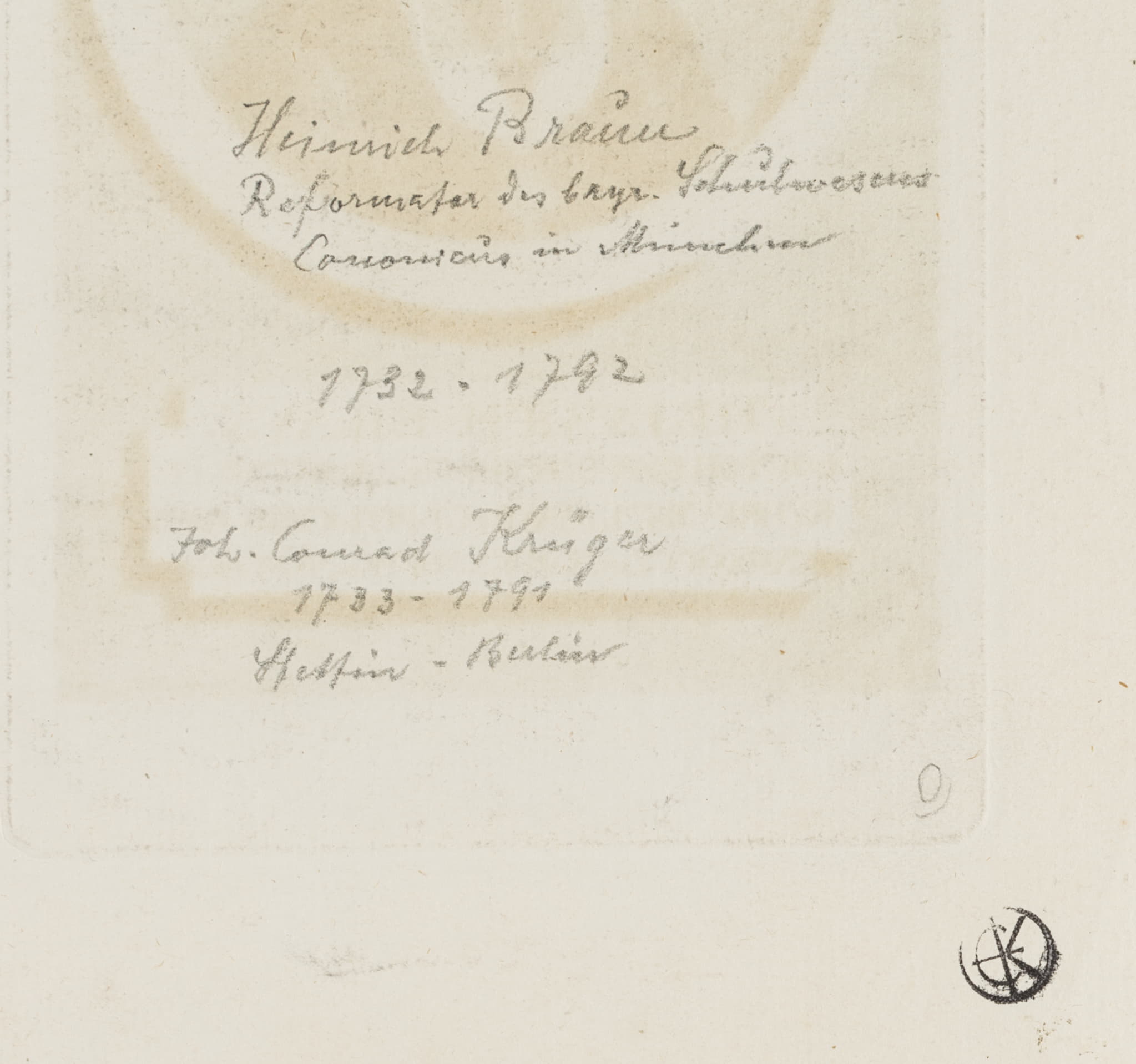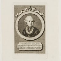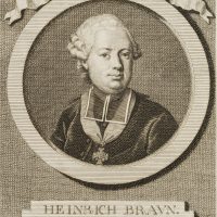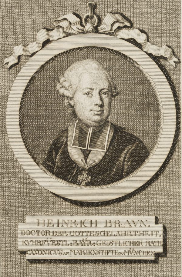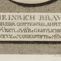 - Beschreibung: Brustportrait des bayerischen Schulreformers Heinrich Braun nach einem Gemälde Martin van Meytens in Medaillon mit Schleife am oberen Rand und Schrifttafel darunter. Braun trägt Perücke und Beffchen, darunter einen Orden am Halsband.